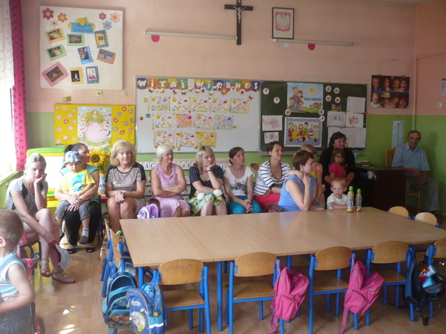 Spotkanie rozpoczęła Dyrektor Szkoły pani Aleksandra Walczak. Powitała licznie przybyłych rodziców wraz z dziećmi. Przedstawiła ofertę edukacyjną dla przedszkolaków na rok szkolny 2014/2015. Oddziały przedszkolne tak jak dotychczas będą podzielone na dwie grupy wiekowe: