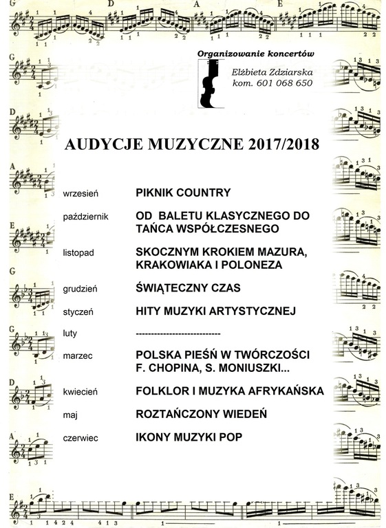 Poniżej przedstawiamy tematykę Audycji muzycznych (cyklu koncertów), które odbędą się w naszej szkole w bieżącym roku szkolnym.