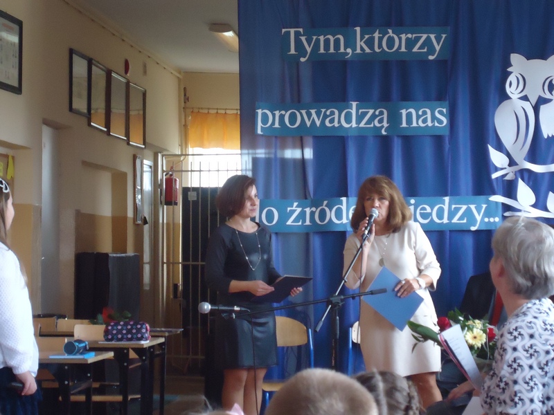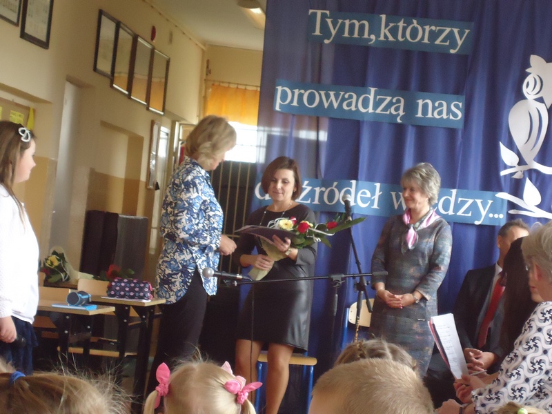 Pani Dyrektor złożyła życzenia pracownikom oświaty i nagrodziła niektórych z nich.