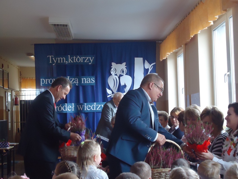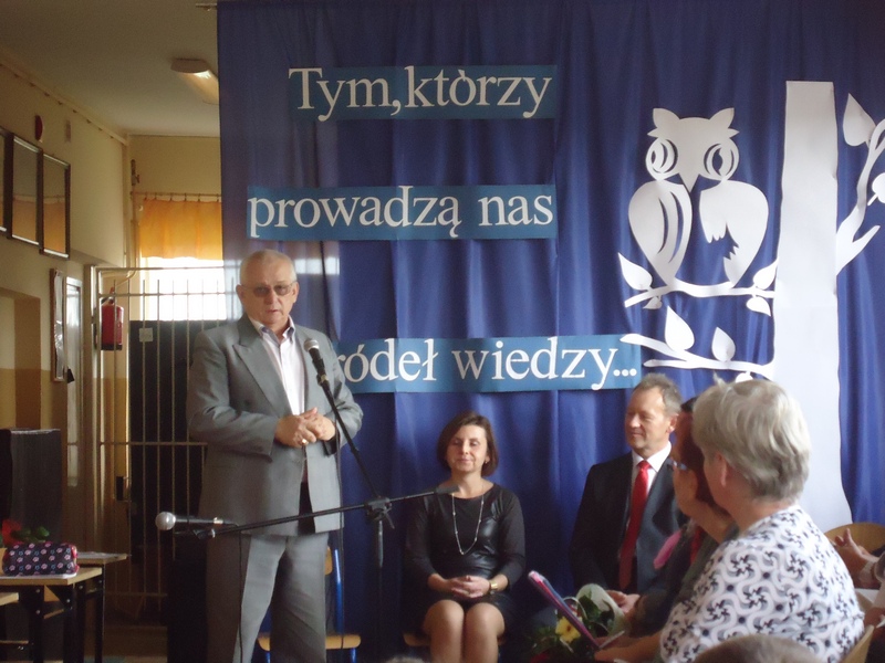 Potem z życzeniami wystąpił Sołtys – Pan Henryk Ogorzelski, który przypomniał, jak trudny i odpowiedzialny jest zawód nauczyciela.