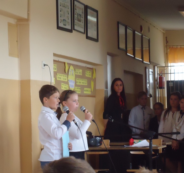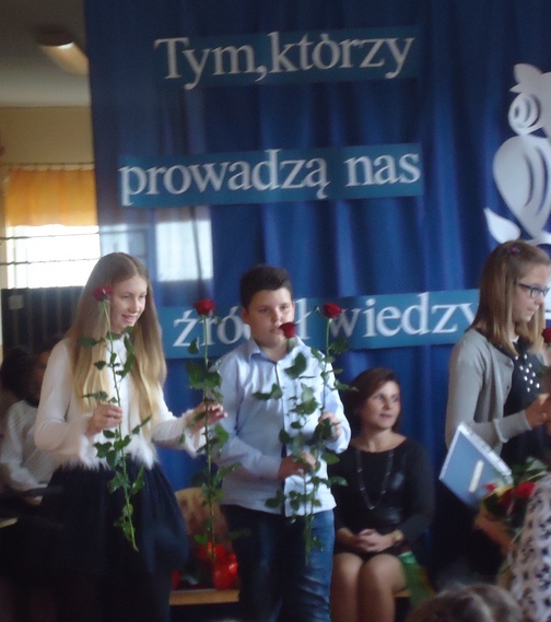 Później na scenę weszli uczniowie, by wierszem i piosenką podziękować nauczycielom i pracownikom naszej szkoły.