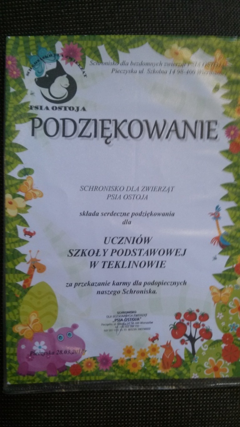 Dnia 28 marca 2018 roku w naszej szkole zakończyła się pierwsza akcja „Zbieramy karmę dla zwierzaka”.