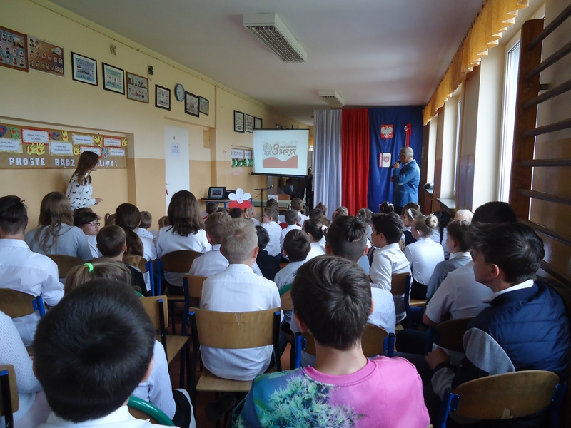W piątek,27 kwietnia, spotkaliśmy się na szkolnym korytarzu, aby uczcić wielkie dla wszystkich Polaków wydarzenie, którego rocznica przypada 3 maja.Tym wydarzeniem jest rocznica uchwalenia Konstytucji 3 maja, która odegrała ogromną rolę w historii naszej Ojczyzny.