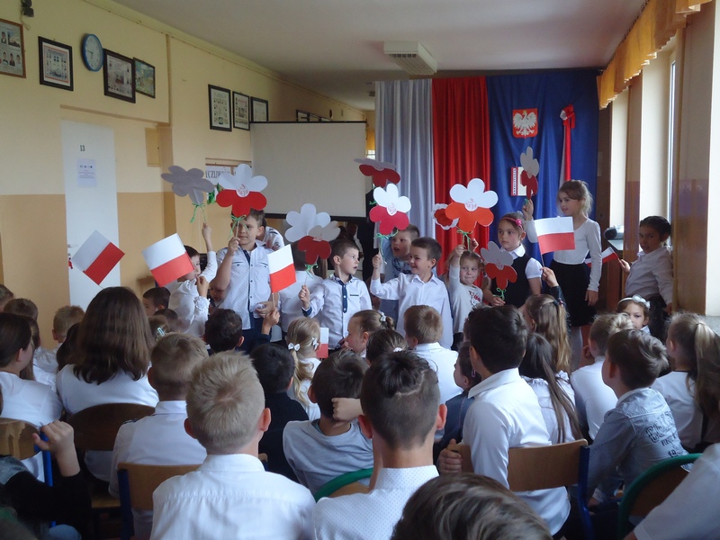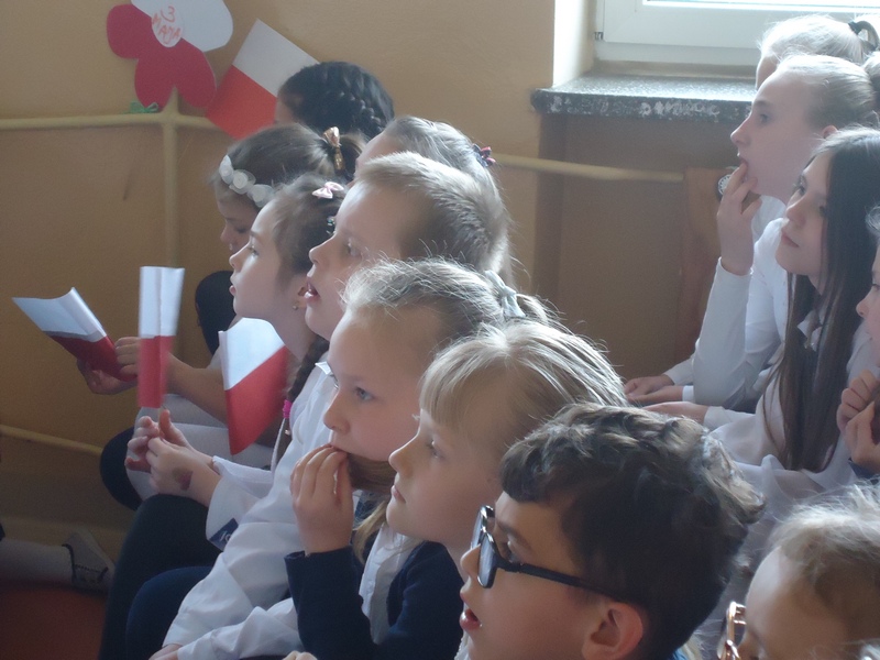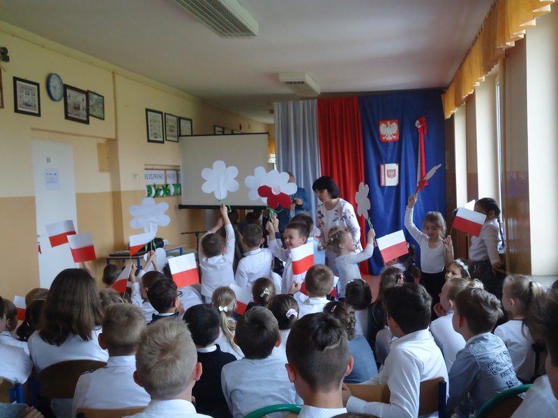 Najmłodsi zamanifestowali swoją polskość, przynosząc na apel biało- czerwone chorągiewki i kwiaty w barwach naszej Ojczyzny.