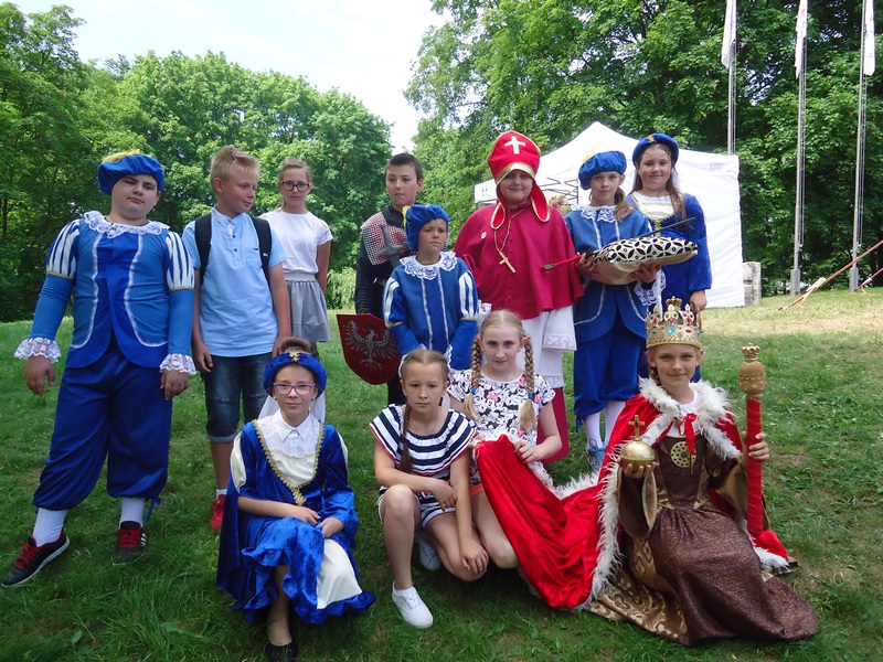 W czasie spotkania zaprezentowaliśmy scenkę nawiązującą do książki pani Zuzanny Orlińskiej „ Z Bożej łaski Jadwiga, król”. Akcja naszej inscenizacji toczyła się w teraźniejszości i w przeszłości. Widzowie mogli przenieść się w czasie i stać świadkami koronacji Jadwigi Andegaweńskiej na króla Polski.