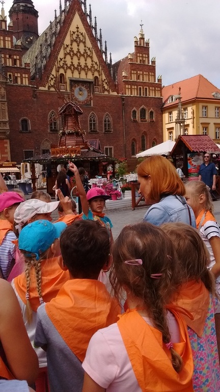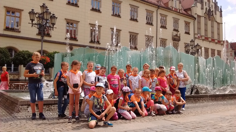 Największą radość sprawił uczniom pobyt w Bobolandii, gdzie mogli korzystać z takich atrakcji jak: małpi gaj, zjeżdżalnia wulkan, trampolina pięciopolowa, stoły bilardowe, cymbergaj, ogródek z zabawkami i wiele innych. Po zabawie w Parku Rozrywki dzieci zjadły pyszny obiad. Następnie przeszli do Rynku szlakiem krasnali. Każda grupa liczyła, ile znajdzie krasnali. Na Rynku podziwiały i chłodziły się przy wspaniałej fontannie. Po wykonaniu wspólnego zdjęcia grupa udała się do Manufaktury Cukier-Lukier, gdzie obserwowała jak wyrabia się masę na lizaki. Potem każdy sam ukręcił swojego lizaka, którego zabrał do domu. Każde dziecko otrzymało jeszcze w prezencie paczkę pysznych cukierków. Ostatnim obiektem zwiedzania był Sky Tower – najwyższy budynek w Polsce -212 metrów oraz 50 pięter. Na 49 piętrze znajduje punkt widokowy na całą panoramę miasta. Winda zawiozła uczniów w ciągu minuty. Widoki były zachwycające. Pełni wspaniałych wrażeń, z pamiątką z urokliwego Wrocławia dzieci powróciły do domu.