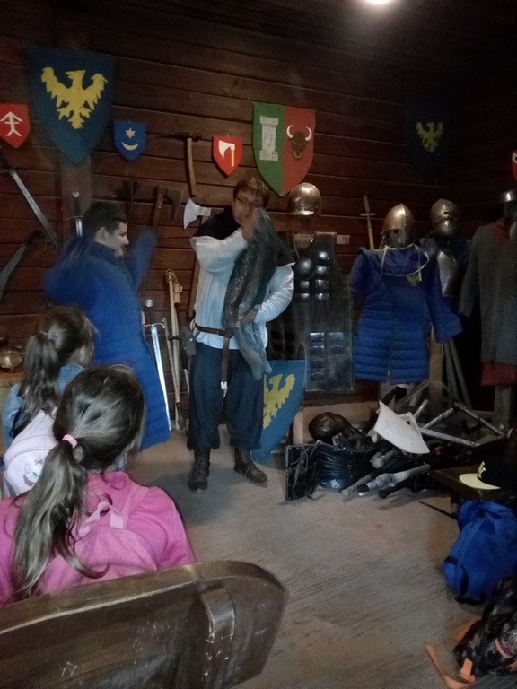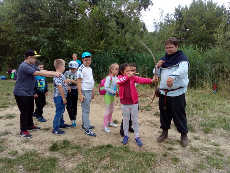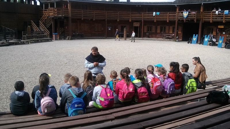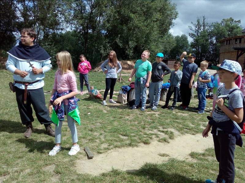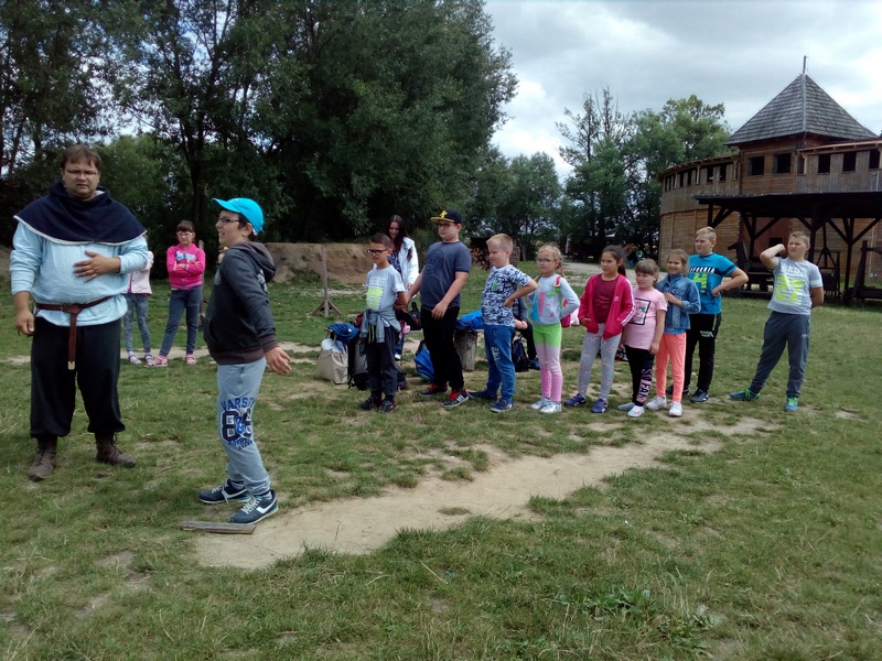 2 lipca 2018 roku uczniowie klas I -VI pojechali do rycerskiego grodu w Biskupicach koło Byczyny. Na miejscu całą grupę przywitał kasztelan grodu, który oprowadzając po grodzie opowiadał jego historię. Był to czas kiedy uczestnicy mogli przekonać się, że wydarzenia historyczne warte są zainteresowania i poszerzania wiedzy na ten temat. Uczestnicy wycieczki mieli również możliwość nauczyć się strzelać z prawdziwego łuku oraz rzucać nożami do tarczy. Była to nie lada atrakcja dla dzieci. Kolejną atrakcją było pisanie gęsim piórem(co okazało się trudne), wyrabianie papieru z celulozy oraz zwiedzanie zbrojowni. Kasztelan szczegółowo opowiadał o zbrojach, jak je wykonywano, o surowym życiu rycerzy w średniowieczu oraz o bitwach w ówczesnych czasach. Dzieci z wielką ciekawością słuchały opowiadań, zasypując kasztelana pytaniami. Namacalnie mogły się przekonać jak wygląda hełm, kolczuga i rękawice rycerskie. Podsumowaniem historycznych wrażeń był smakowity grill. Uczestnicy zmęczeni ale zadowoleni wrócili do domów. Wycieczka nie tylko miała charakter rekreacyjny, ale przede wszystkim edukacyjny, gdyż uczestnicy mieli możliwość poszerzenia wiedzy na temat średniowiecznego życia rycerstwa polskiego.