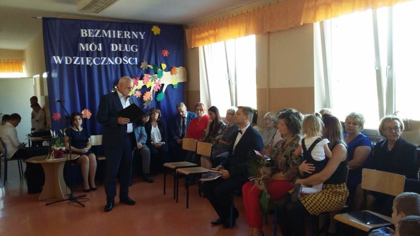 Po wspólnym odśpiewaniu hymnu państwowego Dyrektor szkoły Anna Jakubowska powitała zgromadzonych na akademii nauczycieli, zaproszonych gości i uczniów. To uroczyste spotkanie przypadające w Dniu Edukacji Narodowej - jak co roku – jest po to, aby docenić, uhonorować i podziękować pracownikom oświaty - powiedziała Dyrektor szkoły. Ważnym punktem uroczystości było wyróżnienie licznego grona pracowników za ich szczególne osiągnięcia dydaktyczne, wychowawcze i opiekuńcze. Nagrodę Burmistrza Wieruszowa „za szczególne osiągnięcia w pracy dydaktycznej, wychowawczej i opiekuńczej, za promowanie wśród uczniów pięknych postaw oraz przybliżenie wychowankom świata wartości” otrzymała Maria Jolanta Morta. W imieniu Burmistrza Wieruszowa Nagrodę Burmistrza wręczył Radny Jarosław Dębski. Nagrodami Dyrektora Szkoły Podstawowej w Teklinowie uhonorowano nauczycieli: Bożenę Maciejewską, Mirosławę Sienkiewicz, Angelinę Staniek, Beatę Konieczyńską, Marcina Sobczaka oraz pracowników niepedagogicznych: Grażynę Prymas, Irenę Kopacką i Pawła Piaseckiego.