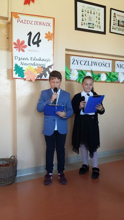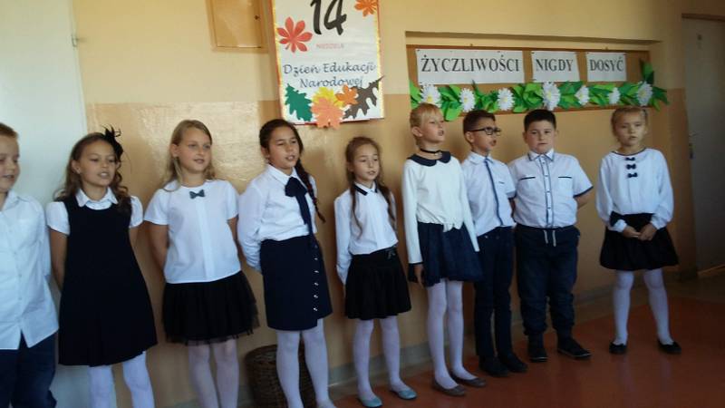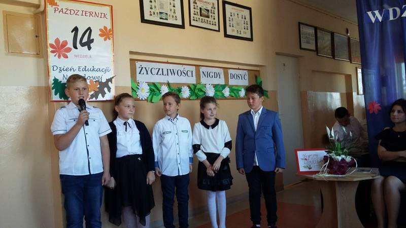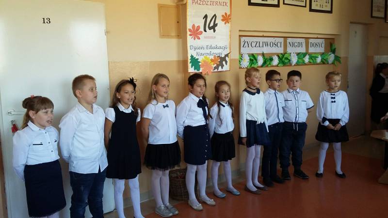 Uroczystą akademię uświetnił występ uczniów z klas młodszych oraz dzieci sześcioletnich. Uczniowie zaskoczyli wszystkich szerokim wachlarzem zdolności. Recytowane wiersze świetnie oddawały realia w świecie szkoły, a przygotowane scenki nie tylko bawiły, ale również pokazywały, że nauczyciele też mają swoje problemy, itp., i szacunek wobec nich to podstawa.