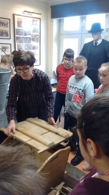 Uczniowie mieli także możliwość zwiedzenia Izby Regionalnej, gdzie nauczycielka historii w ciekawy sposób opowiedziała o przedmiotach, które używane były w dawnych gospodarstwach.