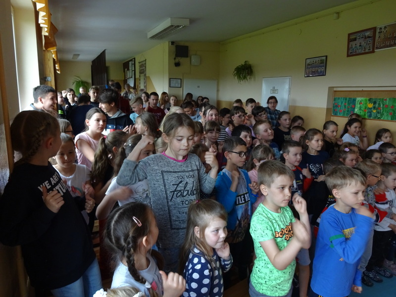 7 maja 2019 roku ponownie gościliśmy w naszej szkole grupę muzyczną, która zaprezentowała audycję pt. „Roztańczona Europa". W spotkaniu wzięły udział dzieci z grup przedszkolnych, uczniowie i nauczyciele.