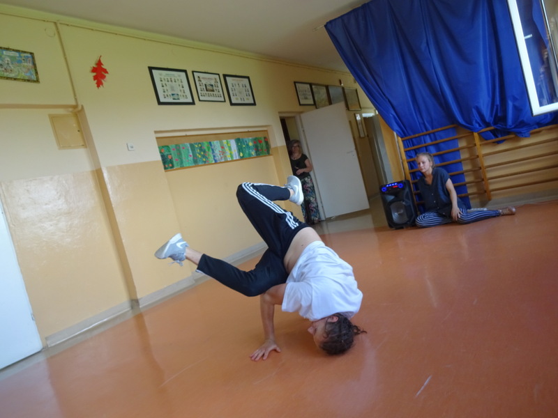 Niezwykłych emocji dostarczył słuchaczom taniec breakdance - jeden z najtrudniejszych tańców na świecie. Historia breakdance’a zaczęła się w Bronxie w Nowym Jorku mniej więcej w latach 70-tych XX wieku. Taniec ten został zainspirowany bitwami uprockowymi, w których brały udział tamtejsze gangi. Początkowo polegało to na pokazywaniu przeciwnikom różnych gestów, póz i markowaniu uderzeń. Początki historii tańca breakdance w Polsce sięgają 1986 roku. Dzięki tancerzowi Markowi, uczniowie z klas starszych poznali kilka podstawowych figur tańca. Marek i tancerka Sara dali również pokaz najmłodszego tańca, który ma niespełna 10 lat.