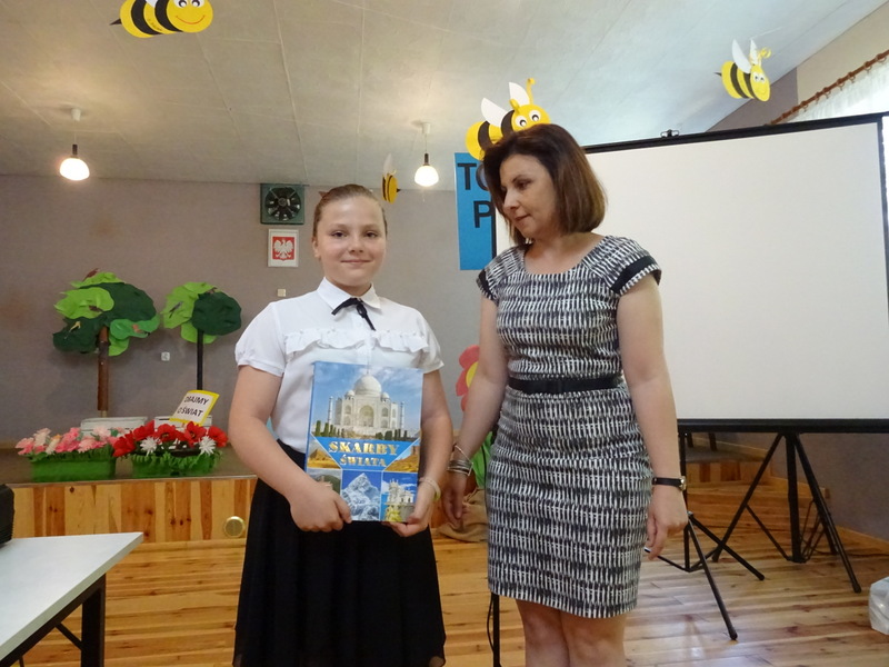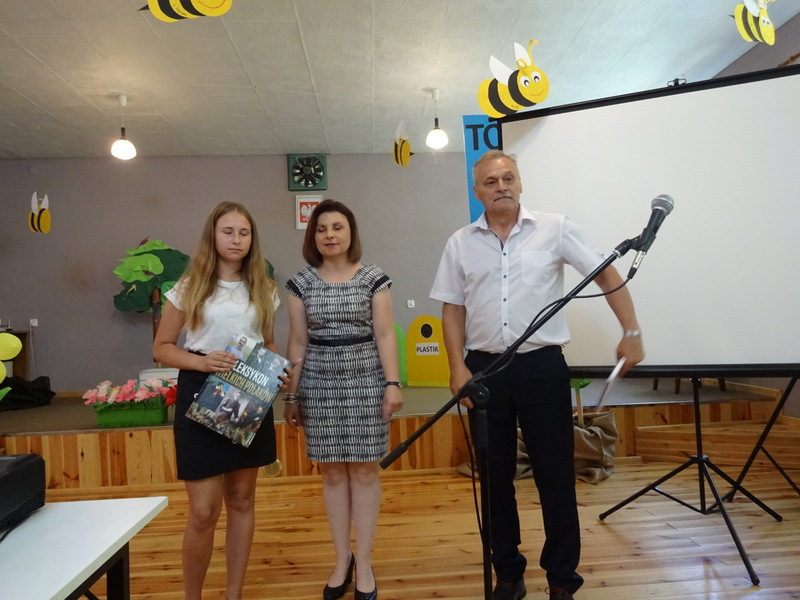 Najbardziej prestiżową nagrodę – Nagrodę Burmistrza dla najlepszego ucznia otrzymała Zuzanna Kukuła z klasy czwartej, a nagrodę Rady Pedagogicznej dla Najlepszego Absolwenta: Patrycja Błaszczyk z klasy ósmej. W dalszej kolejności dyrektor z pomocą wychowawców wręczyła świadectwa z wyróżnieniem i nagrody książkowe wszystkim, którzy uzyskali minimalną średnią ocen 4,75 i co najmniej bardzo dobre zachowanie. Były też nagrody za największe postępy w nauce, osiągnięcia sportowe, 100 % frekwencję, pracę na rzecz szkoły i reprezentowanie szkoły na zewnątrz. Wyróżniono również uczniów, którzy wykazali się systematycznym gromadzeniem oszczędności w SKO.