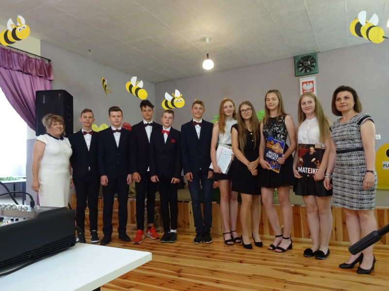 Na zakończenie wychowawcy wręczyli pozostałym uczniom świadectwa oraz dyplomy za dobre wyniki w nauce. Uczniowie zaś podziękowali nauczycielom za całoroczną opiekę.