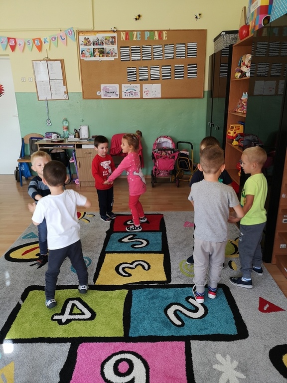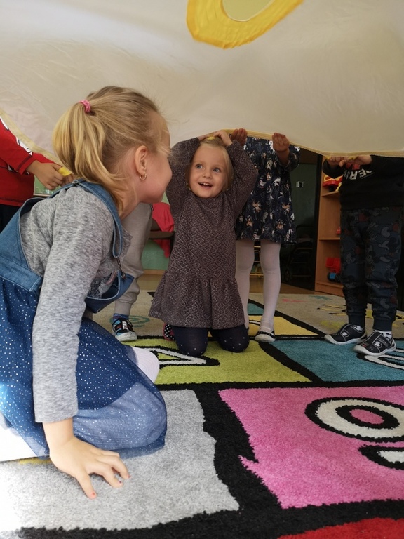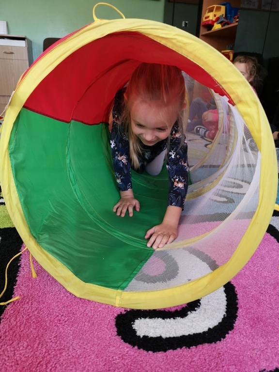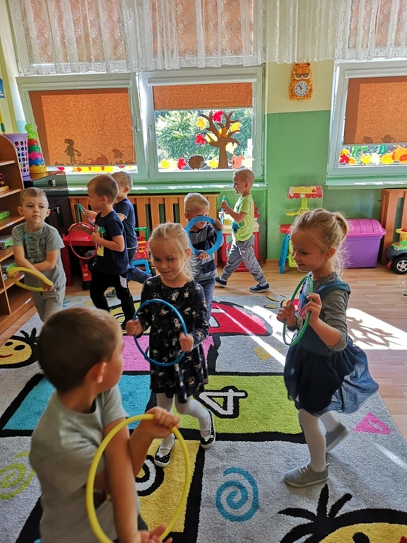 Przedszkolaki z naszego przedszkola także uczciły tez ważny dla nich dzień. Zostały zaproszone do wspólnej zabawy i udziału w konkursach. Rzucały kółkami do celu, pokonywały tor przeszkód, uczestniczyły w zabawach z wykorzystaniem chusty animacyjnej, skakały po „magicznych” kamieniach, przechodziły przez tunel, tańczyły do znanych przebojów dla dzieci. Na koniec każdy przedszkolak otrzymał upominkowy medal a także uczestniczył w przepysznym poczęstunku.