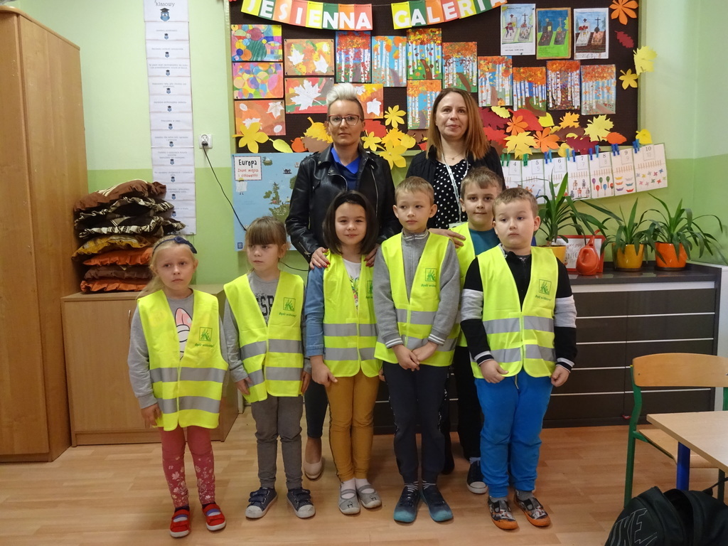 Celem spotkania było przekazanie Pierwszoklasistom informacji o właściwym zachowaniu się na drodze, o bezpieczeństwie podczas prac w domu i gospodarstwie rolnym, o bezpiecznym spędzaniu czasu wolnego w domu i miejscach publicznych oraz o zachowaniu rozwagi podczas kontaktów ze zwierzętami. Dzieci poznały najczęściej zdarzające się wypadki, w których poszkodowani są najmłodsi. Dzieliły się też swoimi spostrzeżeniami i zadawały prowadzącym różnorodne pytania. Jednym z ważniejszych tematów poruszonych na spotkaniu było uświadomienie dzieciom jak ważną rolę pełni korzystanie z odblasków przez pieszych. Na zakończenie wszyscy otrzymali odblaskowe kamizelki. Uczestnicy spotkania z radością je przyjęli i złożyli obietnicę, że będą pamiętać o ich zakładaniu - zwłaszcza w okresie jesienno-zimowym - szczególnie niebezpiecznym na drogach. Spotkanie było bardzo interesujące i pouczające, przede wszystkim ze względu na tematykę, która jest niezwykle istotna dla nas wszystkich. SP w Teklinowie serdecznie dziękuje Kierownictwu i Pracownikom KRUS w Wieruszowie oraz KPP w Wieruszowie za pomoc i realizację działań profilaktycznych.
