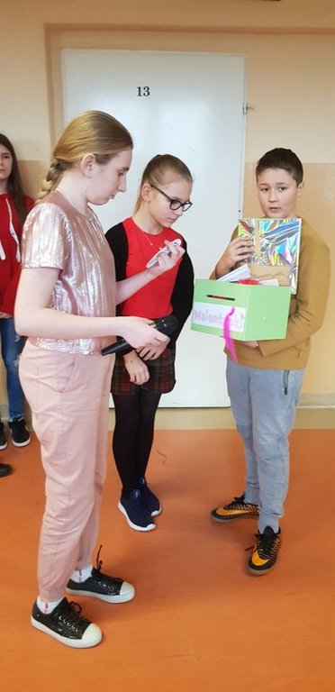 W piątek 14.02.2020 w naszej szkole zostały zorganizowane Walentynki. Każda klasa miała za zadanie przygotować grę związaną z Dniem Zakochanych. Zabawy te przeprowadzane były podczas przerw między lekcjami. Działała też poczta walentynkowa. Przygotowaliśmy również kiermasz dla chorego Wojtusia na którym zostały sprzedane zabawki, gry, książki oraz wiele innych rzeczy. Nasi rodzice, uczniowie oraz grono pedagogiczne upiekli różnego rodzaju ciasta, muffiny oraz babeczki, które zostały zakupione przez uczniów i nauczycieli z naszej placówki. W ten sposób włączyliśmy się w akcję zbiórki dla chorego Wojtusia Howis z Galewic.