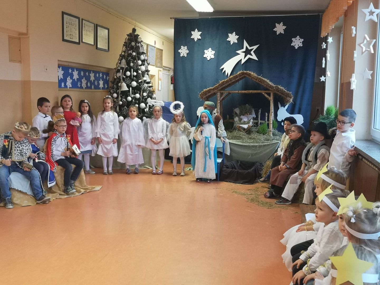 22 grudnia tj. wtorek przedszkolaki z naszego przedszkola pod kierunkiem księdza Karola Galewskiego oraz swoich Pań przygotowały Jasełka. Mali aktorzy we wspaniałych strojach prezentowali się wspaniale. Z dużym przejęciem i zaangażowaniem wiernie odtwarzali swoje role, prezentowali umiejętności recytatorskie, wokalne a także taneczne.