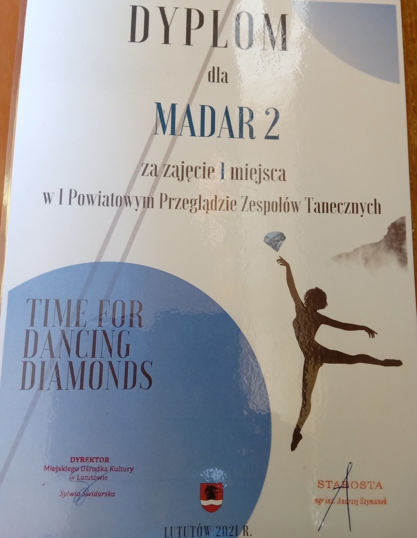 Zespół ,w skład którego wchodzą, wziął udział w I Powiatowym Przeglądzie Zespołów Tanecznych Powiatu Wieruszowskiego, którego głównym organizatorem był Miejski Ośrodek Kultury w Lututowie. Przegląd odbył się w lipcu tego roku , nosił tytuł „Time for Dancing Diamonds”.