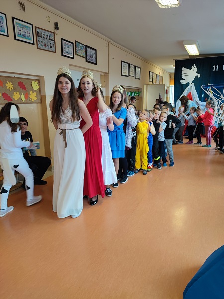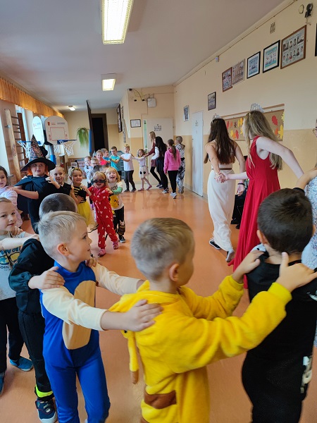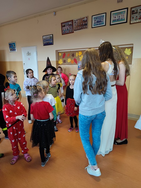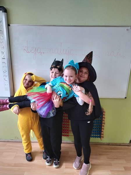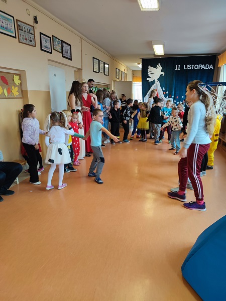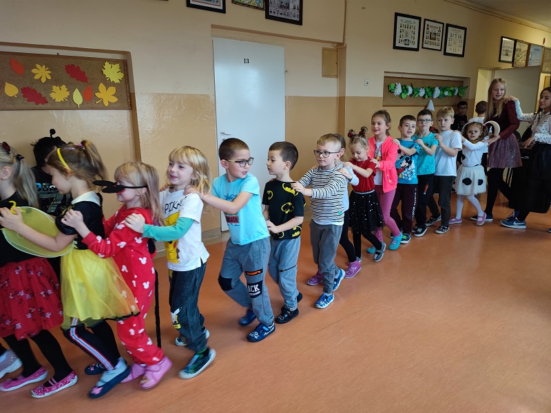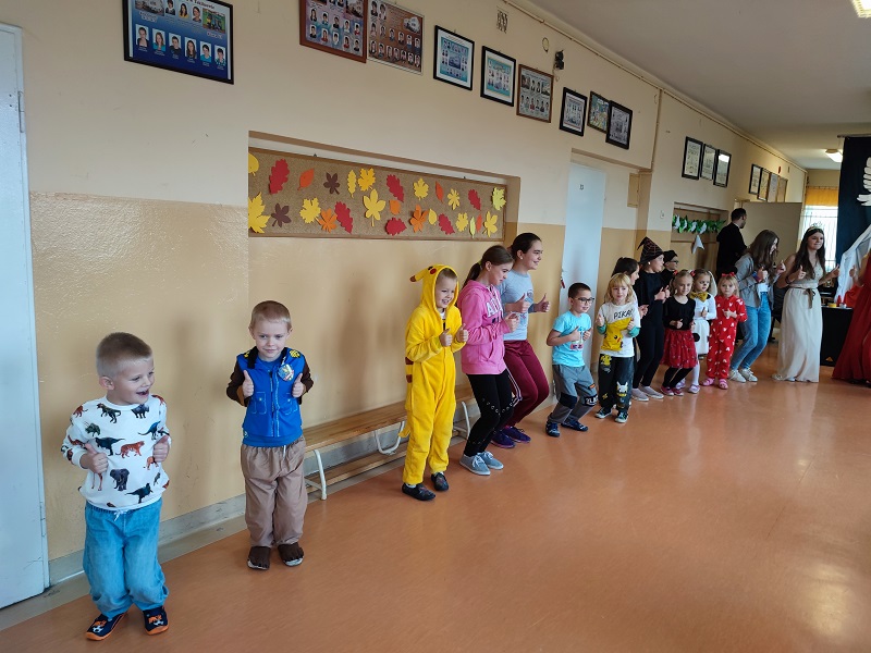 We wtorek 9.11.2021 w naszej szkole odbył się ,,Dzień Postaci z Bajek" . Chętni uczniowie zaprezentowali wspaniałe stroje bajkowych bohaterów. Na przerwach słychac było muzykę z różnych bajek. Były też różne zabawy takie jak ,,Pociąg" ,, Jaka to melodia ?" oraz taniec belgijka w których brały udział zarówno dzieci szkolne jak i przedszkolaki ze starszej grupy przedszkolnej. Nad wszystkim czuwały "dobre Wróżki".