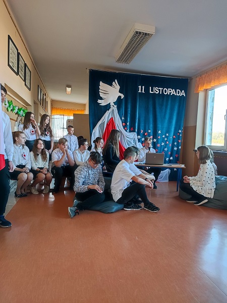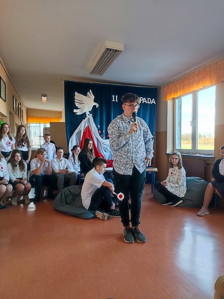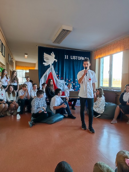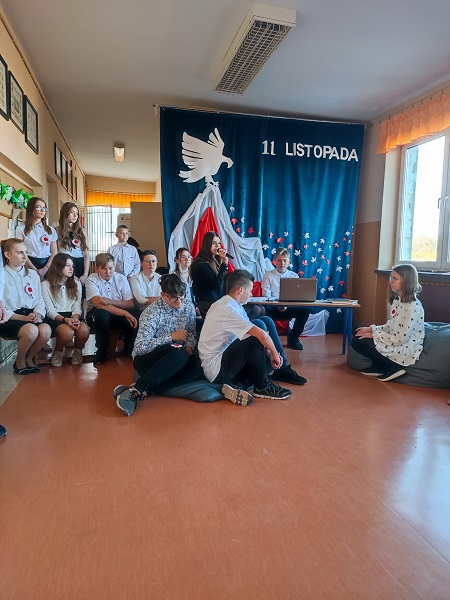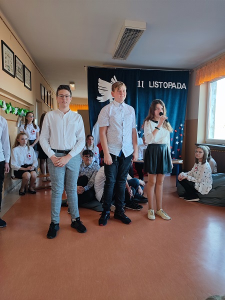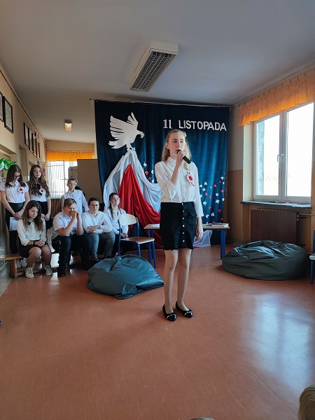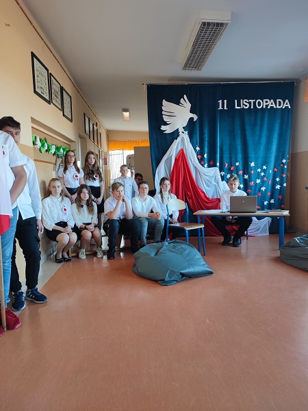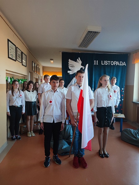 Pielęgnując tradycje oraz patriotyzm w naszej szkole odbył sie uroczysty apel z okazji Narodowego Święta Niepodległości zorganizowany przez uczniów klasy 7 i 8 .