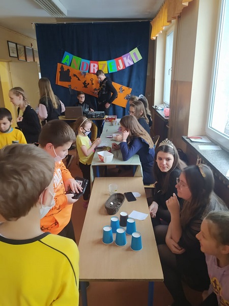 Słowa tej piosenki mogą być podsumowaniem tego, co działo się we wtorek 30 listopada w naszej szkole. Andrzejki to wspaniała okazja do dobrej zabawy i jednocześnie do kultywowania tradycji i obrzędów ludowych. Wielu uczniów z niecierpliwością oczekiwało na ten niezwykły dzień, inny niż wszystkie – dzień tajemniczych wróżb i przepowiedni, połączony z zabawą i tańcem. Podczas tej imprezy świętowaliśmy też Światowy Dzień Życzliwości i Pozdrowień, aby podkreślić jak ważna dla każdego człowieka jest potrzeba szacunku, serdeczności, uśmiechu, mówienie prostych słów: proszę, przepraszam, dziękuję, dzień dobry, miłego dnia i niesienie bezinteresownej pomocy innym. Uczniowie uczestniczyli w quizie savoir vivre przeprowadzonym przez dziewczyny z klasy ósmej. Został również ogłoszony wśród uczniów klas I-VIII „plebiscyt życzliwości”. Najżyczliwszym uczniem naszej szkoły został Adrian Rabiega z klasy VIII, a najżyczliwszą uczennicą Natalia Borczyk z klasy I. W nagrodę otrzymali medale życzliwosci i duży aplauz od całej społeczności szkolnej.