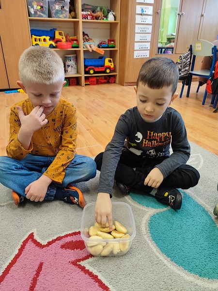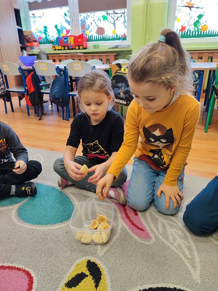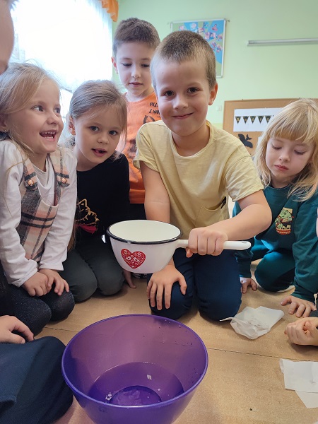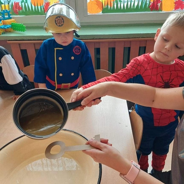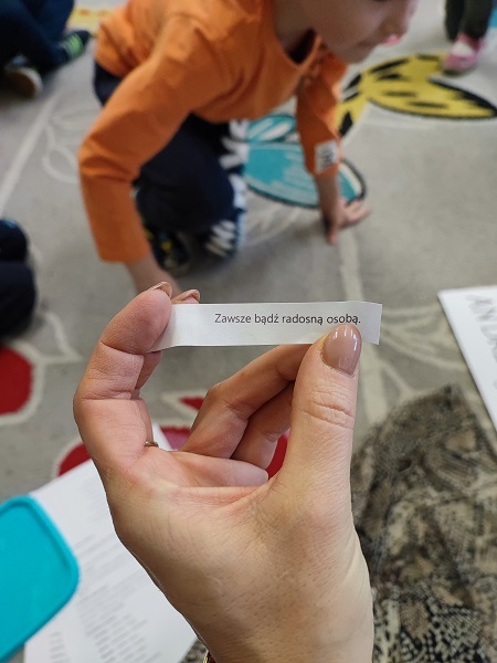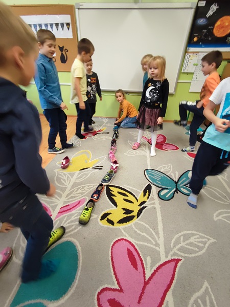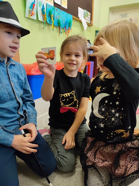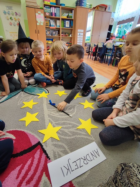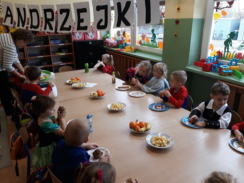 Z kolei przedszkolaki rozpoczęły zabawę od słów - „Święty Andrzeju daj nam znać co się będzie z nami dziać!”. Każda z grup przygotowała coś magicznego tego dnia. Był to dzień radosnych zabaw i wróżb, w których dzieci mogły poznać swoją bliższą i dalszą przyszłość. Nie zabrakło ustawiania butów, przekłuwania serduszek z imionami, wróżenia za pomocą wirującej butelki, słodkich ciasteczek z wróżbą na przyszłość itp. Wróżby przeplatane były tańcami oraz zabawami przy skocznej muzyce. Zabawa była przednia a dzieciom do końca dopisywał dobry humor.