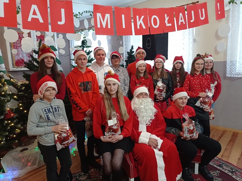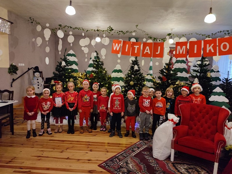 6 grudnia jest od wielu lat dniem, w którym w naszej szkole podtrzymujemy mikołajkową tradycję. Od samego rana z każdej strony kręciły się po korytarzach i w klasach dzieci ubrane na czerwono, w pięknych mikołajkowych czapkach. Nastrój świąteczno-zimowy zapanował w pełni.