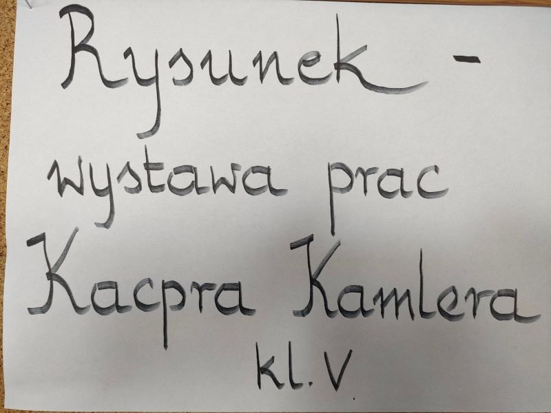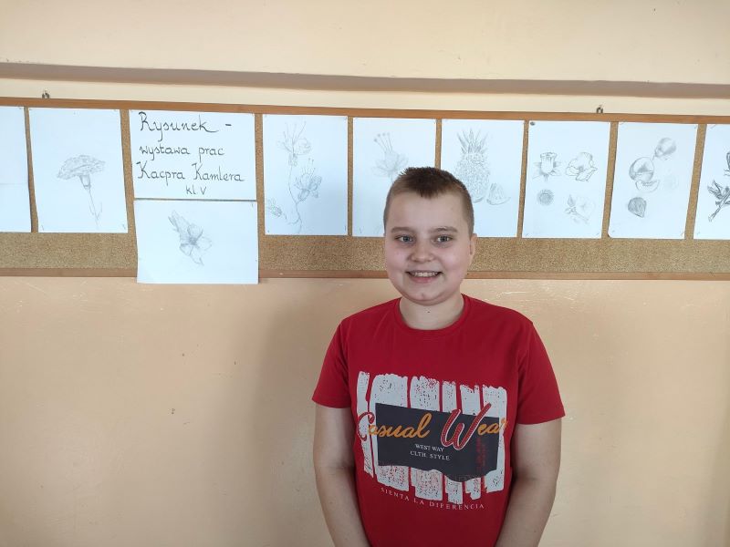 W ostatnich dniach mogliśmy oglądać wystawę prac rysunkowych ucznia klasy V Kacpra Kampera. Na szkolnym korytarzu podziwialiśmy wystawę i talent plastyczny naszego ucznia. Trzymamy kciuki za rozwój młodego artysty!