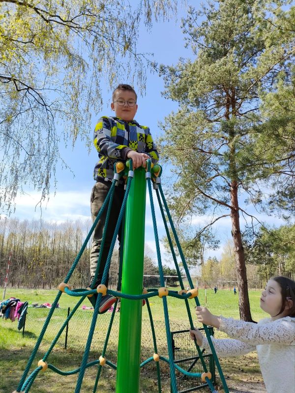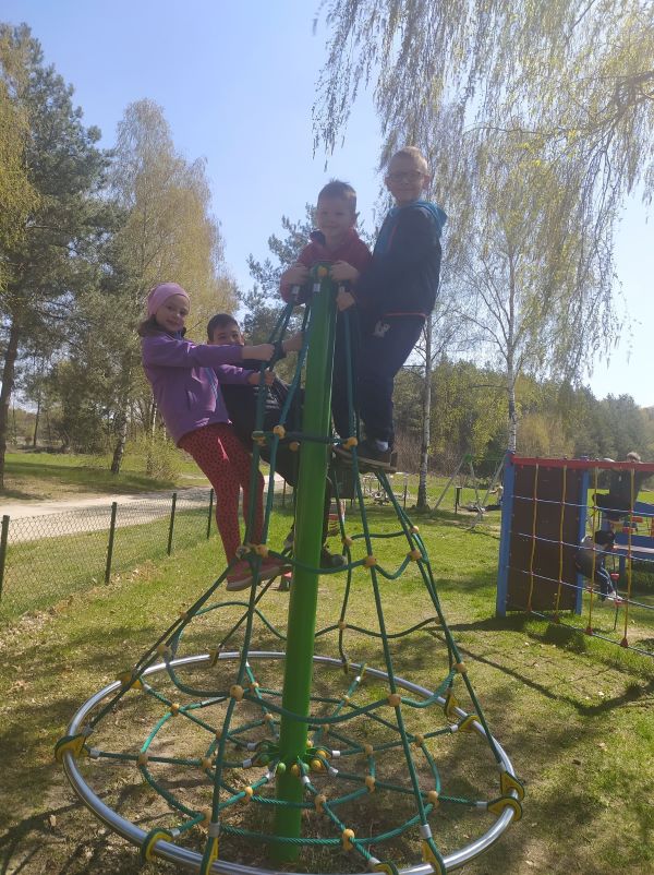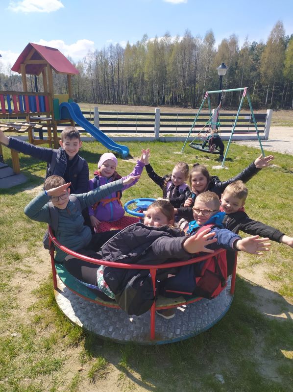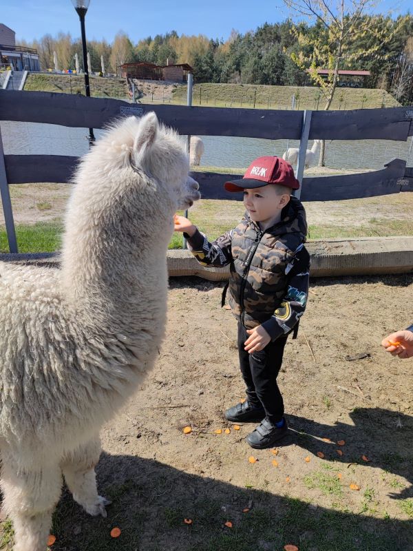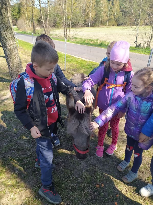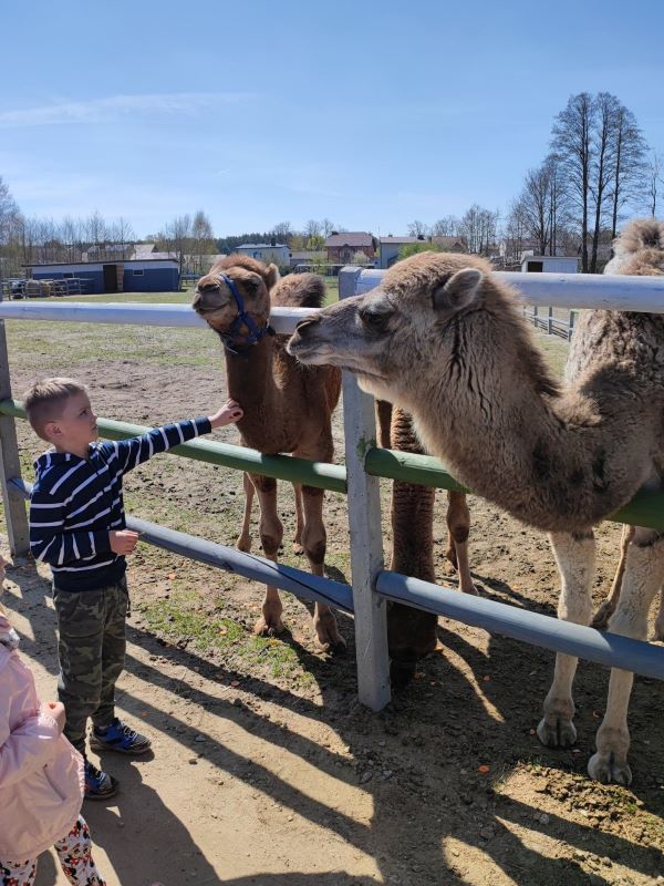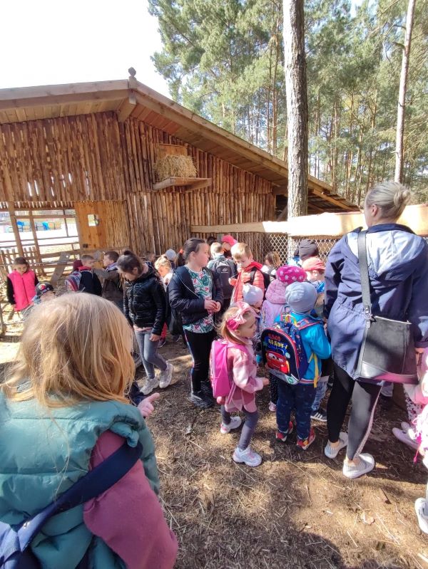 W piątkowy ranek przedszkolaki wraz z uczniami z klas I i III udały się na wycieczkę do agroturystyki „Pod Dębem” mieszczącej się w miejscowości Osowa. Był to wyjazd zwieńczający obchody Dnia Ziemi przełożony z poprzedniego tygodnia z powodu niesprzyjającej pogody. Na szczęście w ten piątek pogoda dopisała. Już od rana humory uczestników sięgały zenitu 😊 Na miejscu na dzieci czekało wiele atrakcji. Zaczęliśmy od poznawania przyjaznych dla ludzi „mieszkańców” tego miejsca- alpaki, wielbłądy, osły, strusie, łabędzie - które mogły same karmić, jak również głaskać i przytulać. Dzieci wzbogaciły swoją wiedzę na temat ich pochodzenia, hodowli i pielęgnacji. Po tylu wrażeniach i wiadomościach oraz wzmożonego apetytu wszyscy posilili się frytkami, które sprezentowała nasza Rada Rodziców. Z pełnymi brzuchami i nową energią ruszyliśmy dalej. W pobliżu obiektu było wiele miejsc sprzyjających aktywności ruchowej – plac zabaw, trasa spacerowa podczas której można było podziwiać piękno naszej przyrody, jej różnorodność. Wszystko w otoczeniu lasu, ciszy i spokoju. Na zakończenie odbył się piknik połączony z grami i zabawami, pamiętając, aby w trosce o naszą planetę zostawić po sobie porządek. Dzieci zmęczone, pełne wrażań, ale z uśmiechem na twarzy wróciły do szkoły.