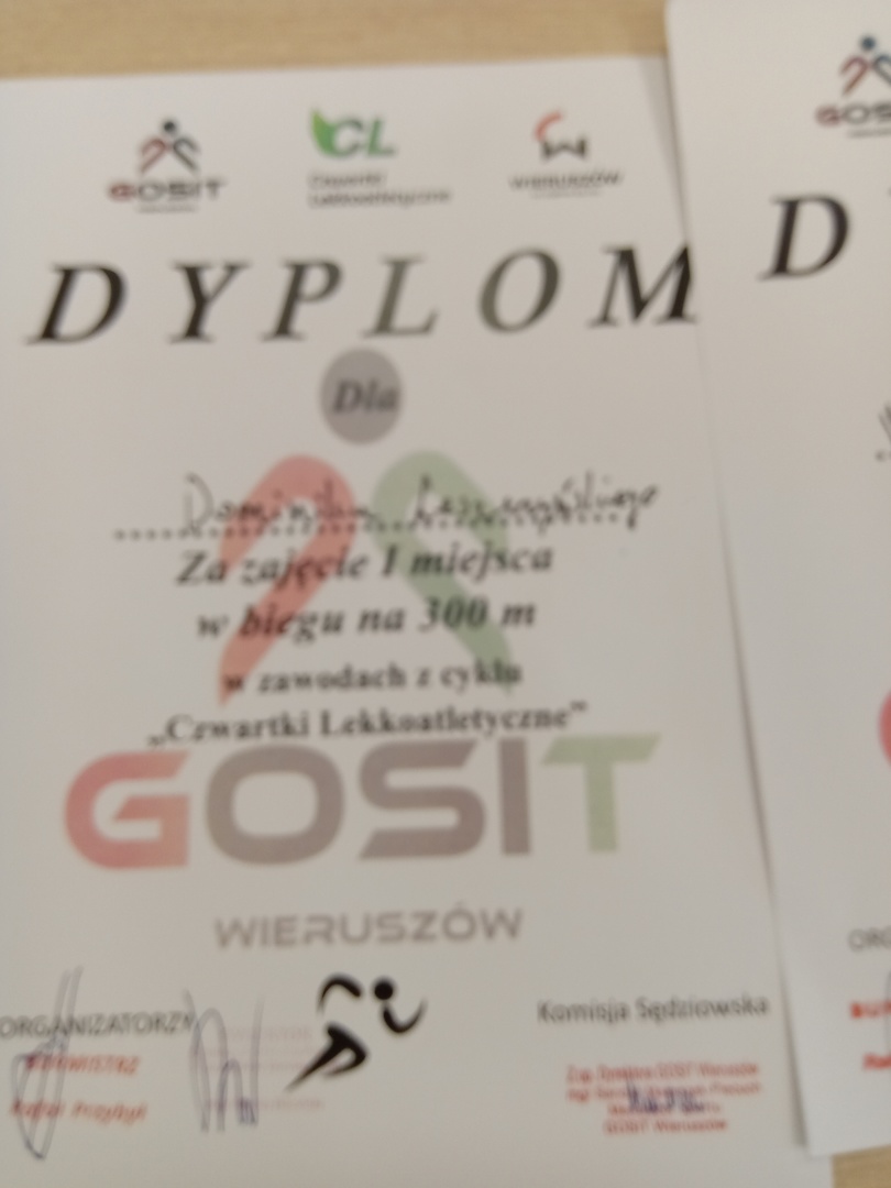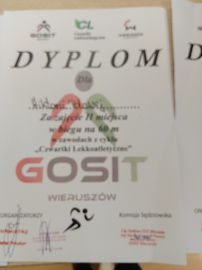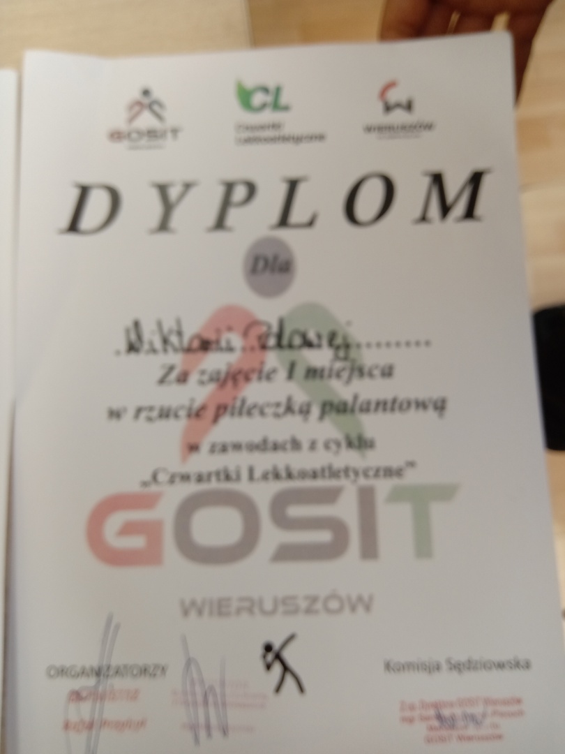 Wiktoria może pochwalić się I miejscem w rzucie piłką palantową i II miejscem w biegu na 60 metrów. Dominik zajął I miejsce w biegu na 300 metrów.