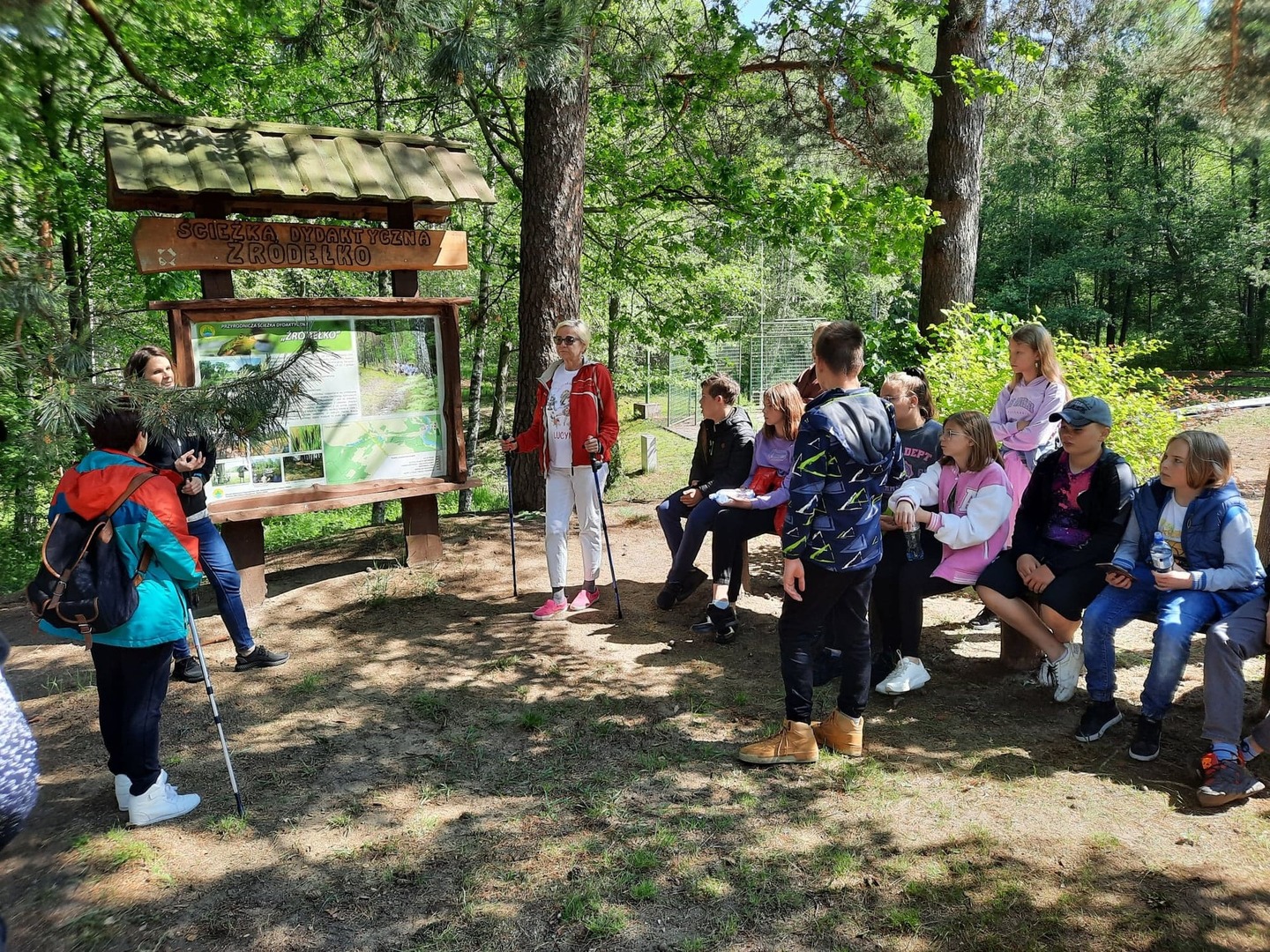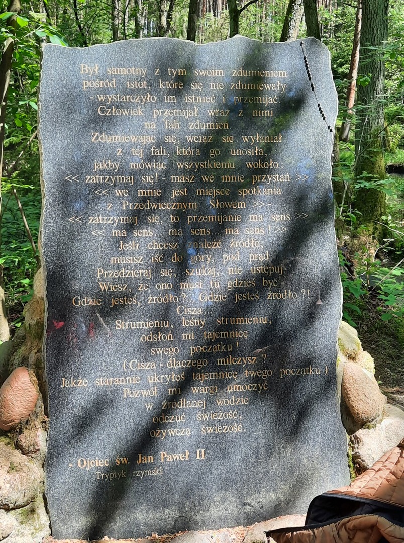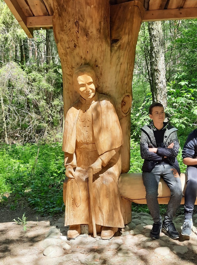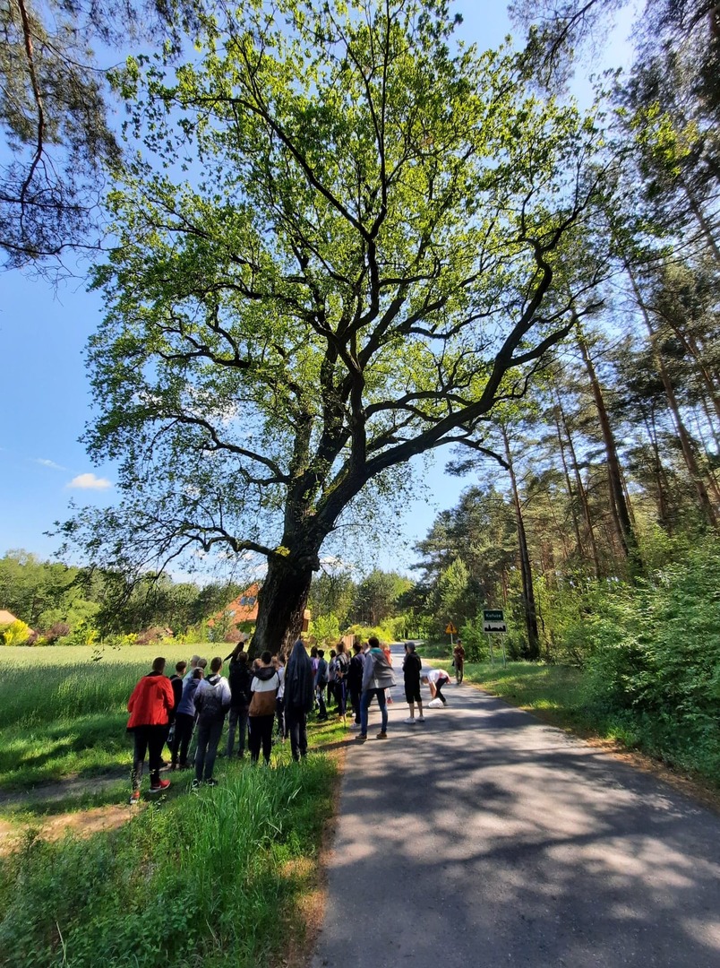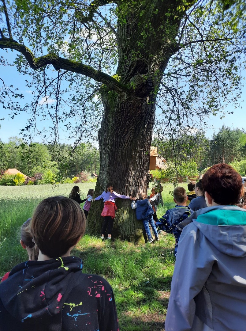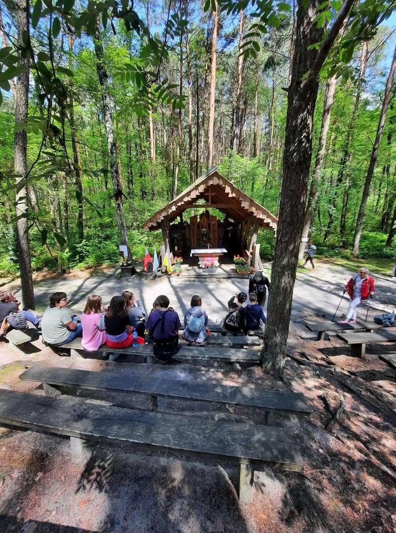 Kolejnego dnia, po śniadaniu, spotkaliśmy się z panią Basią- pracownikiem Ośrodka Związku Harcerstwa Polskiego i wspólnie udaliśmy się nad brzeg płynącej nieopodal rzeki Warty. Promem-tratwą przeprawiliśmy się na drugą stronę i ruszyliśmy szlakiem ścieżki dydaktycznej „Źródełko”. Mieliśmy niepowtarzalną okazję zapoznać się z walorami przyrodniczymi i kulturowymi Załęczańskiego Parku Krajobrazowego. Po drodze podziwialiśmy jaz młyński, stary młyn czy pomnik przyrody - dąb szypułkowy porośnięty porostem. Ścieżką przez łąki, pola i las zmierzaliśmy do Źródełka Objawienia. W lesie przy ścieżce zauważyć można było stojące co kawałek poszczególne stacje Drogi Krzyżowej. Przy źródełku pani przewodnik opowiedziała o jego historii związanej z ukazaniem się pewnej kobiecie Matki Boskiej. Ludzie wierzą, że woda wypływająca ze źródła ma właściwości lecznicze. Także i my zaczerpnęliśmy z niego wody. Tuż przy źródełku podziwialiśmy także otwarty leśny kościółek, ołtarzyk, o który bardzo dbają mieszkańcy pobliskiej miejscowości Kałuże. Odbywają się w nim Msze Święte ku czci Matki Boskiej. Wracając do ośrodka pani przewodnik zaprowadziła nas również w część lasu, w której zobaczyć mogliśmy, widoczne do dziś, okopy z czasów II wojny światowej. W godzinach popołudniowych wróciliśmy do Teklinowa.