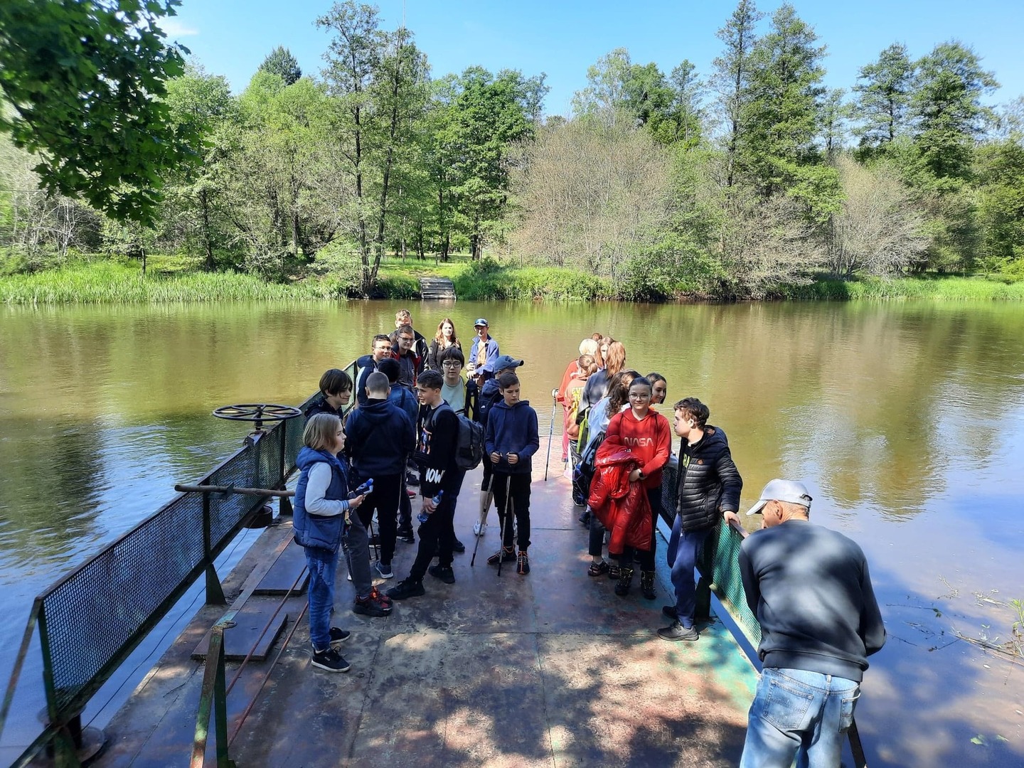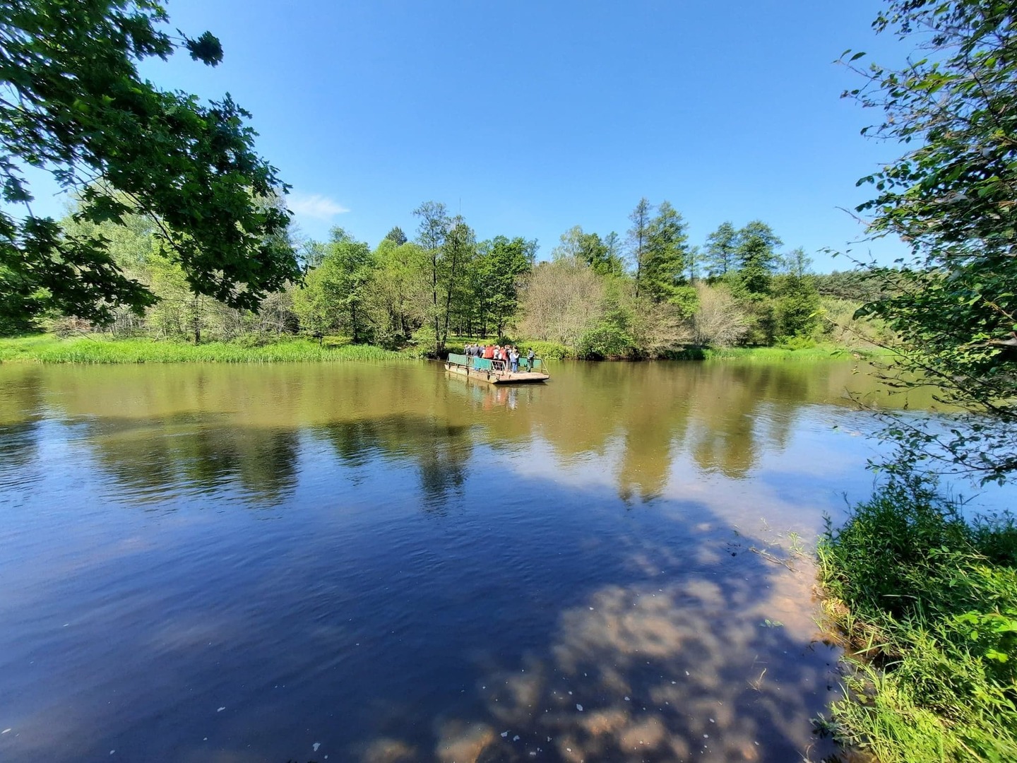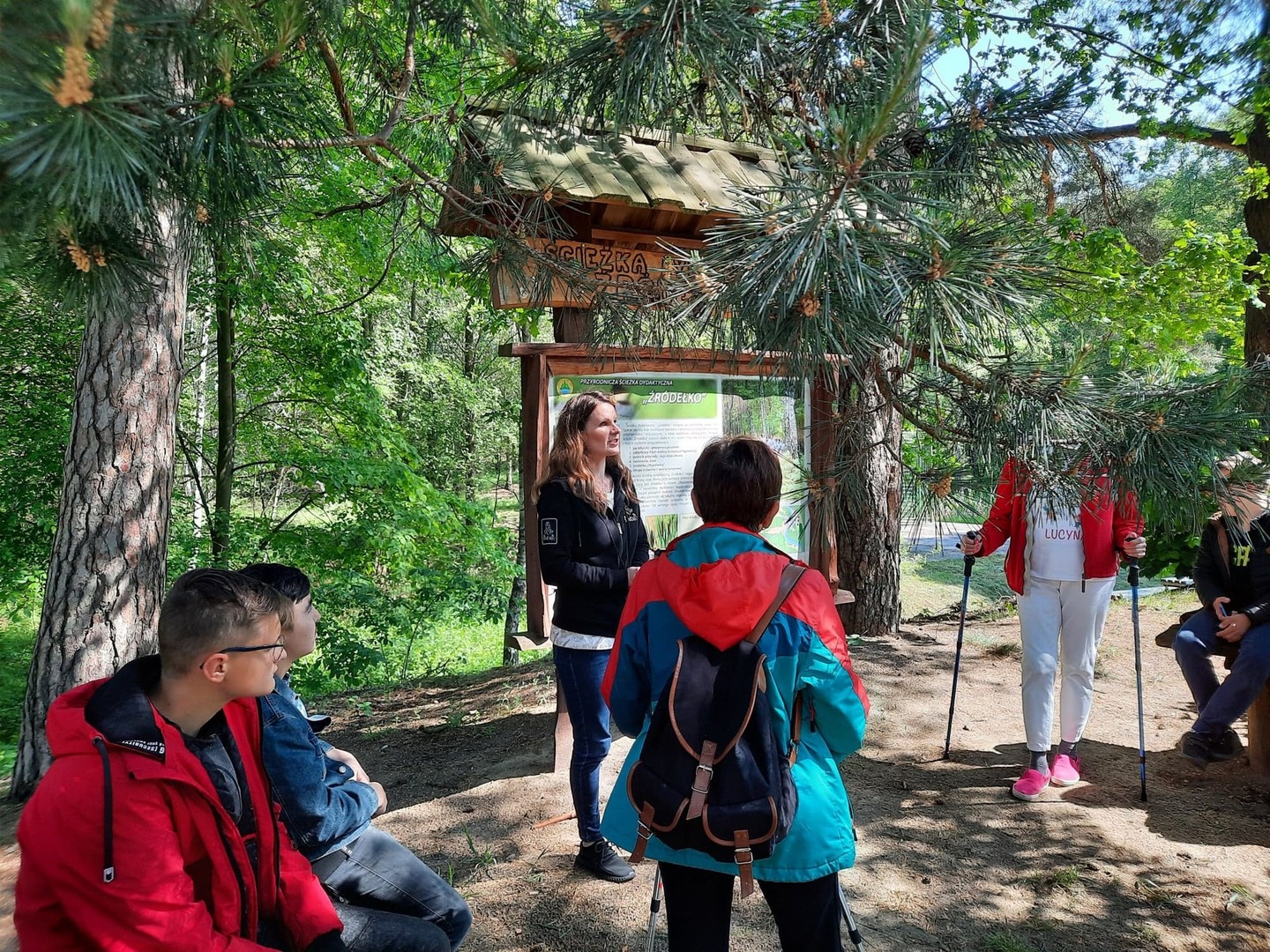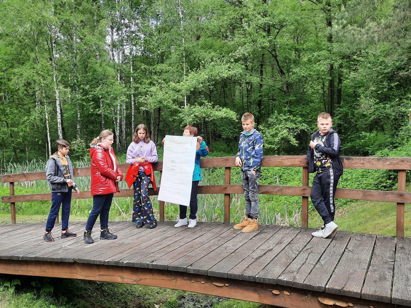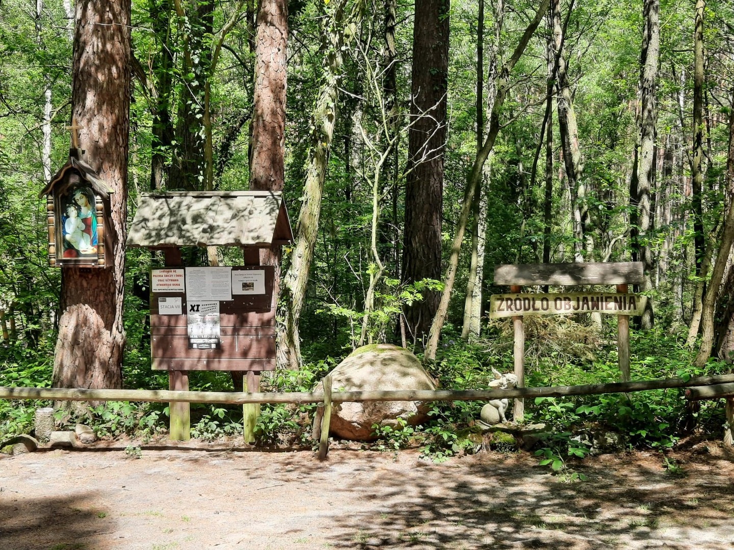 Kolejnego dnia, po śniadaniu, spotkaliśmy się z panią Basią- pracownikiem Ośrodka Związku Harcerstwa Polskiego i wspólnie udaliśmy się nad brzeg płynącej nieopodal rzeki Warty. Promem-tratwą przeprawiliśmy się na drugą stronę i ruszyliśmy szlakiem ścieżki dydaktycznej „Źródełko”. Mieliśmy niepowtarzalną okazję zapoznać się z walorami przyrodniczymi i kulturowymi Załęczańskiego Parku Krajobrazowego. Po drodze podziwialiśmy jaz młyński, stary młyn czy pomnik przyrody - dąb szypułkowy porośnięty porostem. Ścieżką przez łąki, pola i las zmierzaliśmy do Źródełka Objawienia. W lesie przy ścieżce zauważyć można było stojące co kawałek poszczególne stacje Drogi Krzyżowej. Przy źródełku pani przewodnik opowiedziała o jego historii związanej z ukazaniem się pewnej kobiecie Matki Boskiej. Ludzie wierzą, że woda wypływająca ze źródła ma właściwości lecznicze. Także i my zaczerpnęliśmy z niego wody. Tuż przy źródełku podziwialiśmy także otwarty leśny kościółek, ołtarzyk, o który bardzo dbają mieszkańcy pobliskiej miejscowości Kałuże. Odbywają się w nim Msze Święte ku czci Matki Boskiej. Wracając do ośrodka pani przewodnik zaprowadziła nas również w część lasu, w której zobaczyć mogliśmy, widoczne do dziś, okopy z czasów II wojny światowej. W godzinach popołudniowych wróciliśmy do Teklinowa.