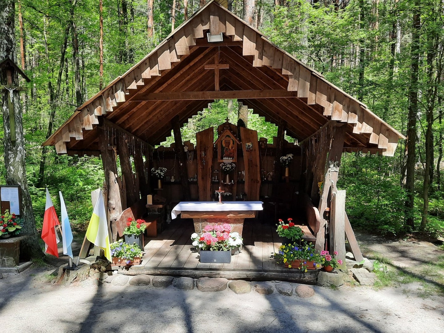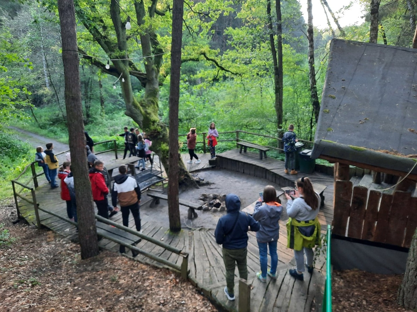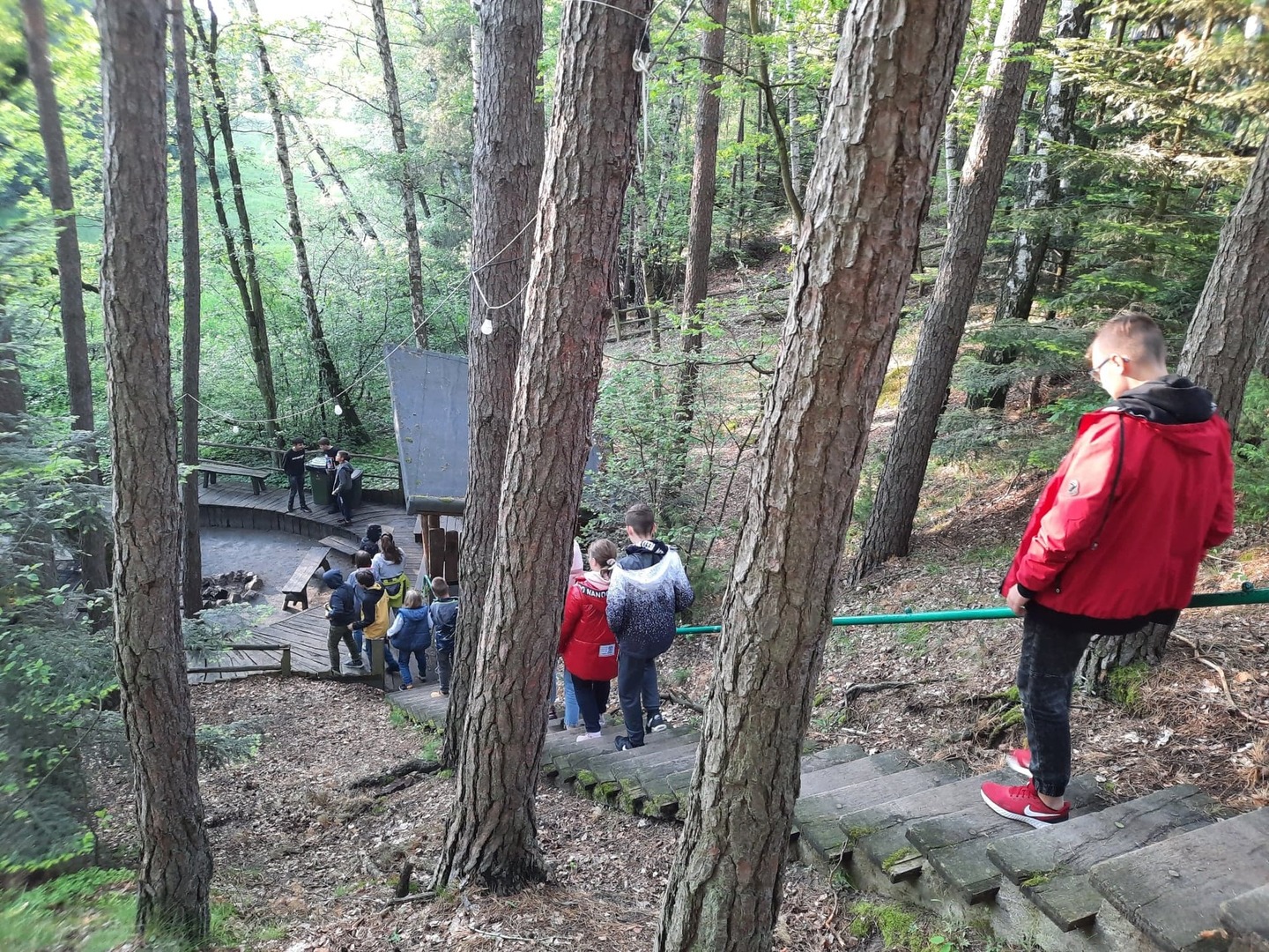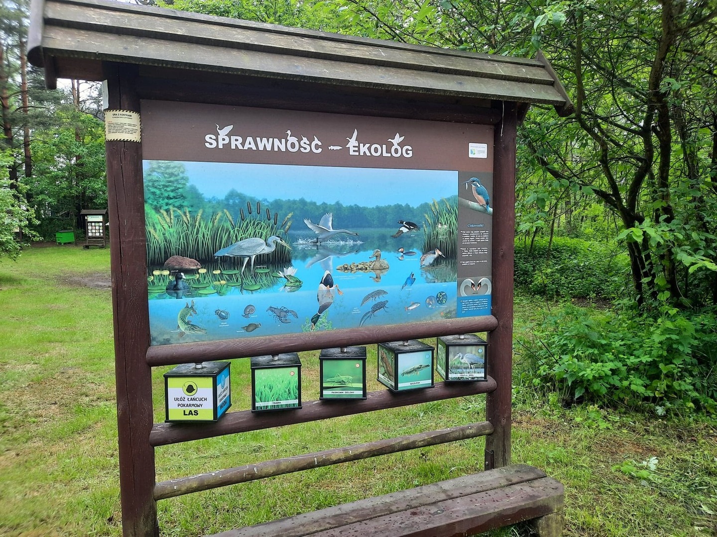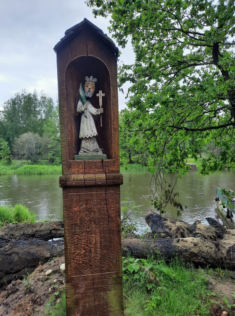 Kolejnego dnia, po śniadaniu, spotkaliśmy się z panią Basią- pracownikiem Ośrodka Związku Harcerstwa Polskiego i wspólnie udaliśmy się nad brzeg płynącej nieopodal rzeki Warty. Promem-tratwą przeprawiliśmy się na drugą stronę i ruszyliśmy szlakiem ścieżki dydaktycznej „Źródełko”. Mieliśmy niepowtarzalną okazję zapoznać się z walorami przyrodniczymi i kulturowymi Załęczańskiego Parku Krajobrazowego. Po drodze podziwialiśmy jaz młyński, stary młyn czy pomnik przyrody - dąb szypułkowy porośnięty porostem. Ścieżką przez łąki, pola i las zmierzaliśmy do Źródełka Objawienia. W lesie przy ścieżce zauważyć można było stojące co kawałek poszczególne stacje Drogi Krzyżowej. Przy źródełku pani przewodnik opowiedziała o jego historii związanej z ukazaniem się pewnej kobiecie Matki Boskiej. Ludzie wierzą, że woda wypływająca ze źródła ma właściwości lecznicze. Także i my zaczerpnęliśmy z niego wody. Tuż przy źródełku podziwialiśmy także otwarty leśny kościółek, ołtarzyk, o który bardzo dbają mieszkańcy pobliskiej miejscowości Kałuże. Odbywają się w nim Msze Święte ku czci Matki Boskiej. Wracając do ośrodka pani przewodnik zaprowadziła nas również w część lasu, w której zobaczyć mogliśmy, widoczne do dziś, okopy z czasów II wojny światowej. W godzinach popołudniowych wróciliśmy do Teklinowa.