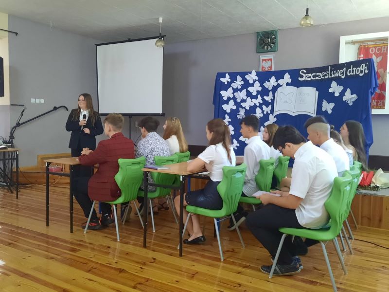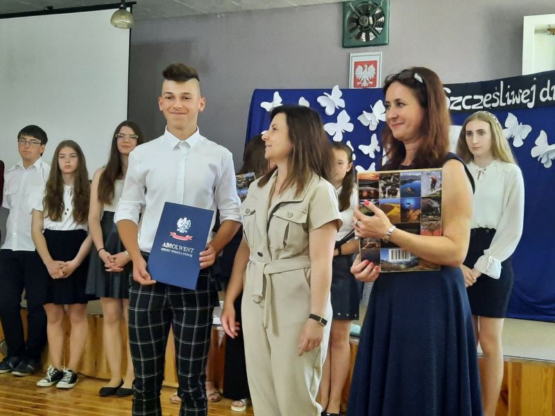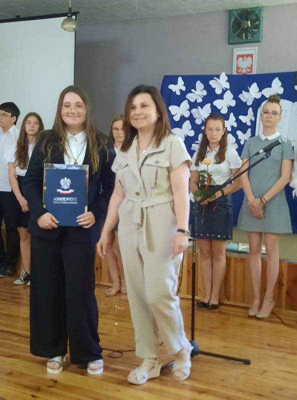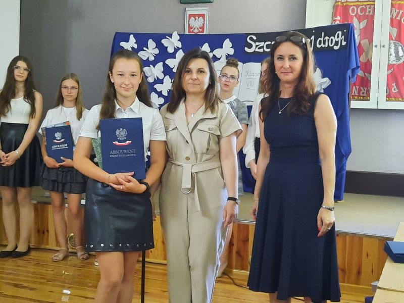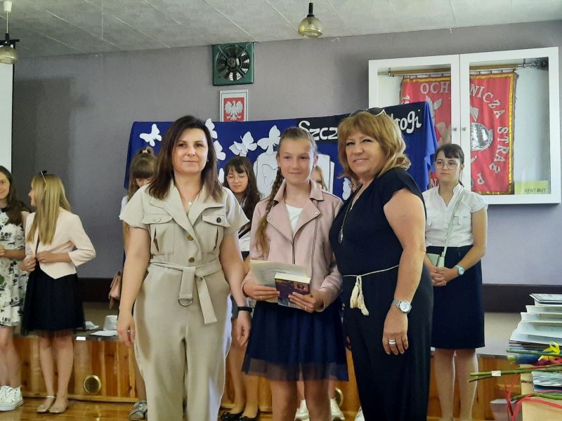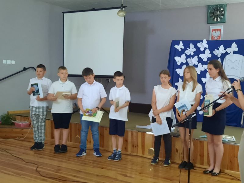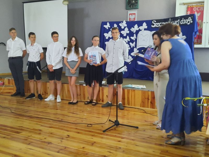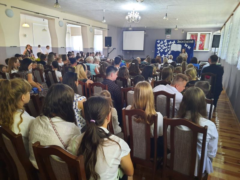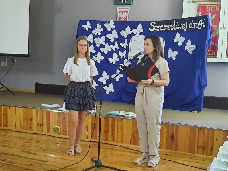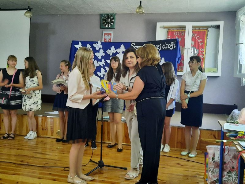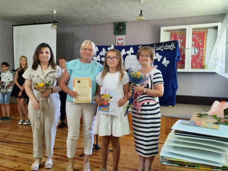 W piątek, 24.06.2022 r., cała społeczność szkolna zgromadziła się na Sali OSP w Teklinowie. Po powitaniu zebranych dyrektor szkoły Anna Jakubowska krótko podsumowała mijający rok szkolny dziękując wszystkim za pracę i zaangażowanie. Wraz z radnym gminnym p. Jarosławem Dębskim oraz prezesem tutejszej OSP p. Zbigniewem Gąszczakiem wręczyła Nagrodę Burmistrza Wieruszowa najlepszej absolwentce Dominice Przysiewek oraz przekazała gratulacje dla jej rodziców. Pani dyrektor wręczyła również Nagrodę Dyrektora Szkoły oraz Nagrody Rady Pedagogicznej. Wręczono także świadectwa z wyróżnieniem i nagrody książkowe jak również karty rowerowe, a najmłodszym pamiątkowe dyplomy i słodkie upominki zafundowane przez rodziców. Wszyscy uczniowie otrzymali świadectwa promujące ich do kolejnych klas. Wszyscy uczniowie najstarszej klasy, klasy ósmej, uroczyście otrzymali świadectwa ukończenia szkoły podstawowej. Przedstawicielki Rady Rodziców na ręce pani dyrektor, symbolicznym bukietem kwiatów podziękowały za współpracę w minionym roku szkolnym i życzyły wszystkim zasłużonego odpoczynku.