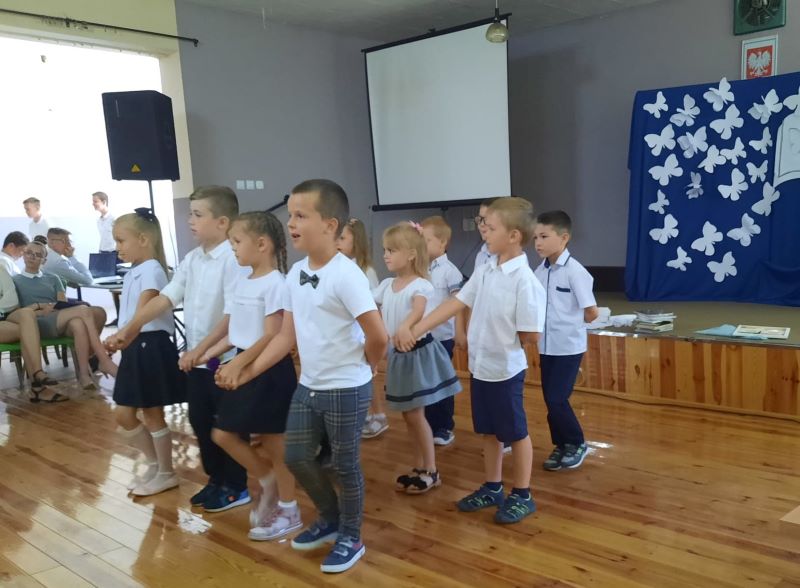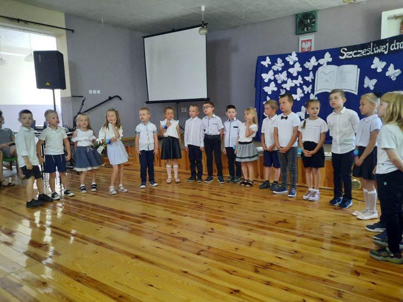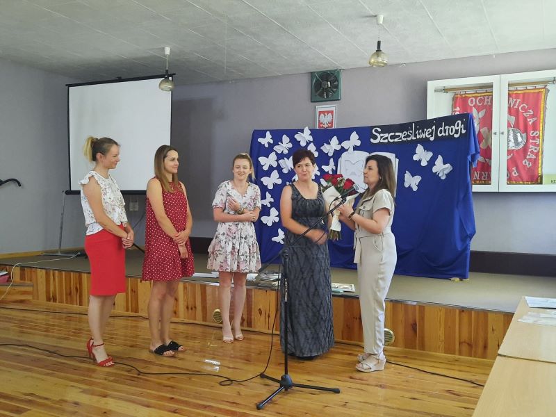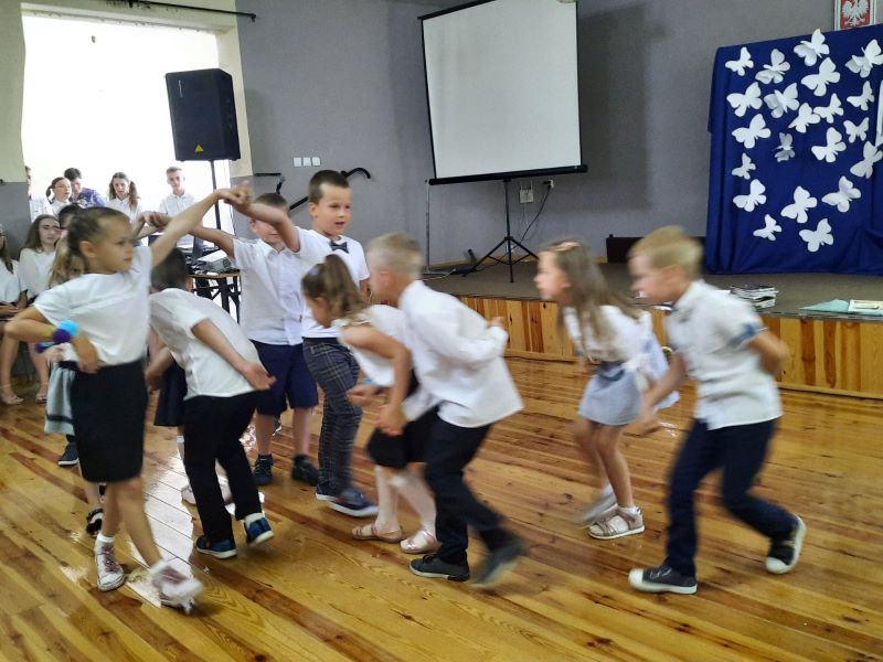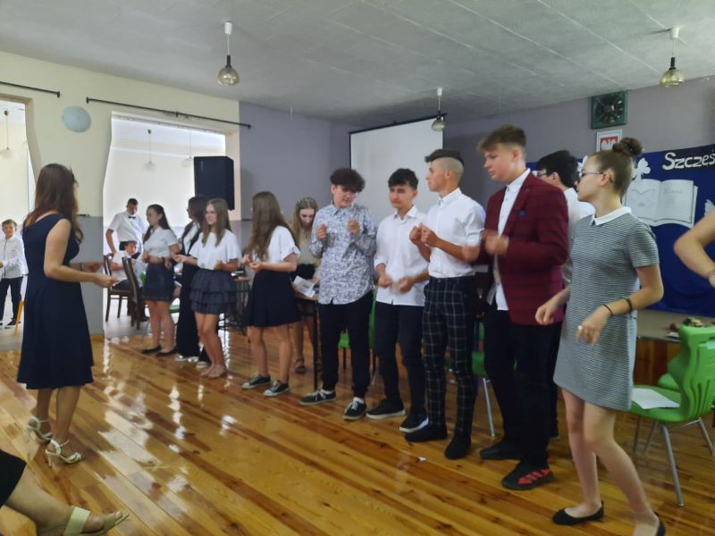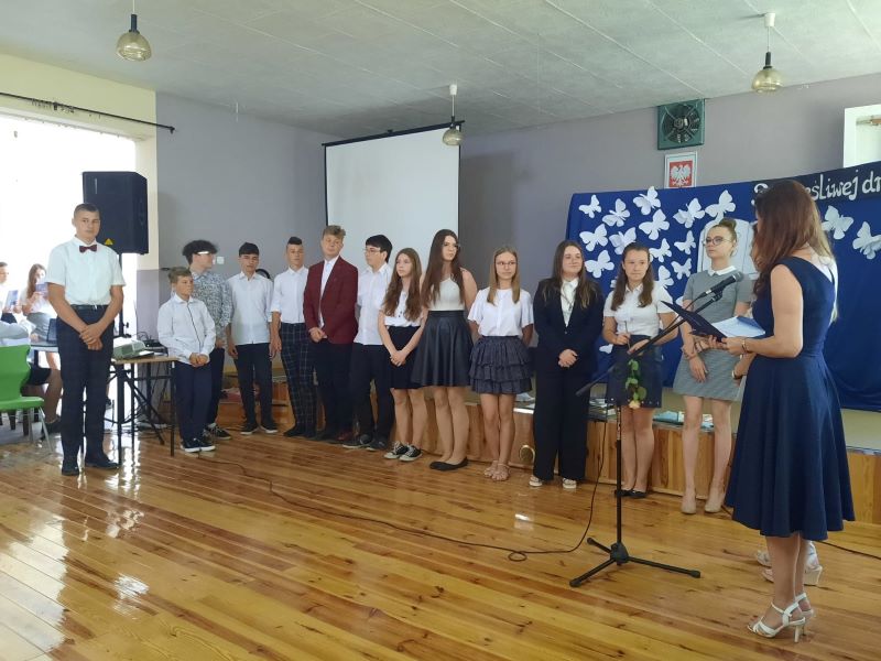 Zakończenie roku szkolnego to nie tylko czas rozpoczynający wakacje ale także czas zamykający różne etapy. Niektórzy nauczyciele kończą pracę w naszej szkole by podjąć nowe zawodowe wyzwania, „zerówka” kończy etap przedszkolny a trzecioklasiści kończą naukę w klasach młodszych. Dzieci zaakcentowały to tańcem, wierszem i piosenką. Ósmoklasiści po raz ostatni przekroczyli progi szkolne. Również zaprezentowali część artystyczną, w której pożegnali się ze szkołą. Podziękowali za wspólne minione lata, za cierpliwość, otwartość i trud przekazywania wiedzy pani dyrektor, swoim wychowawcom, nauczycielom i rodzicom. Emocji i wzruszeń było bardzo wiele. Siódmoklasiści w kilku słowach, w imieniu swoim, pozostałych uczniów i pracowników szkoły, pożegnali swoje starsze koleżanki i kolegów życząc im powodzenia w kolejnych szkołach. By pamięć o Szkole Podstawowej w Teklinowie w nich trwała wręczyli im upominki.