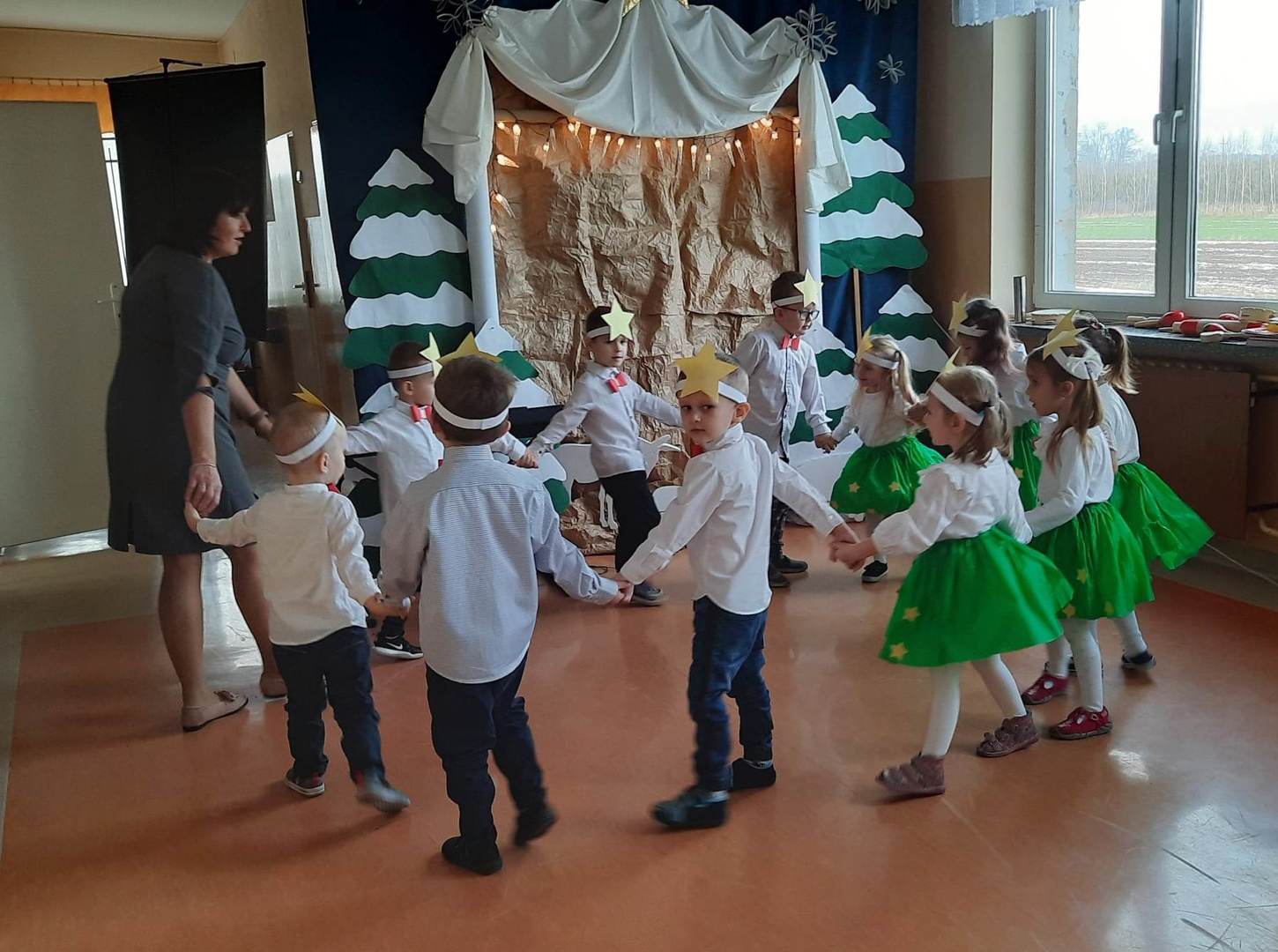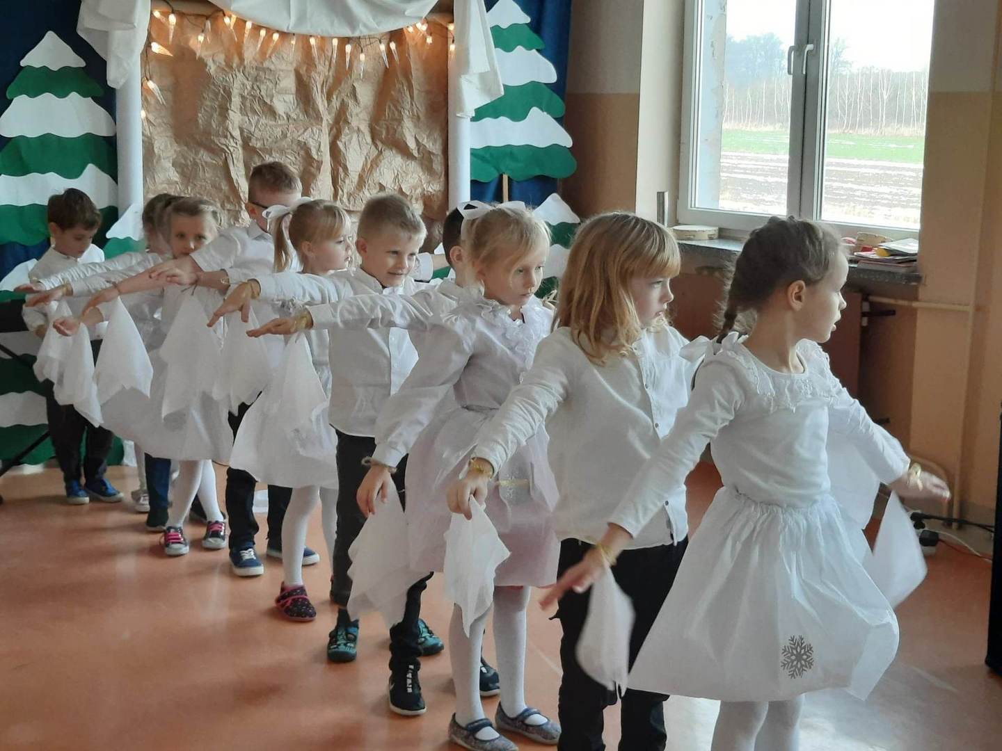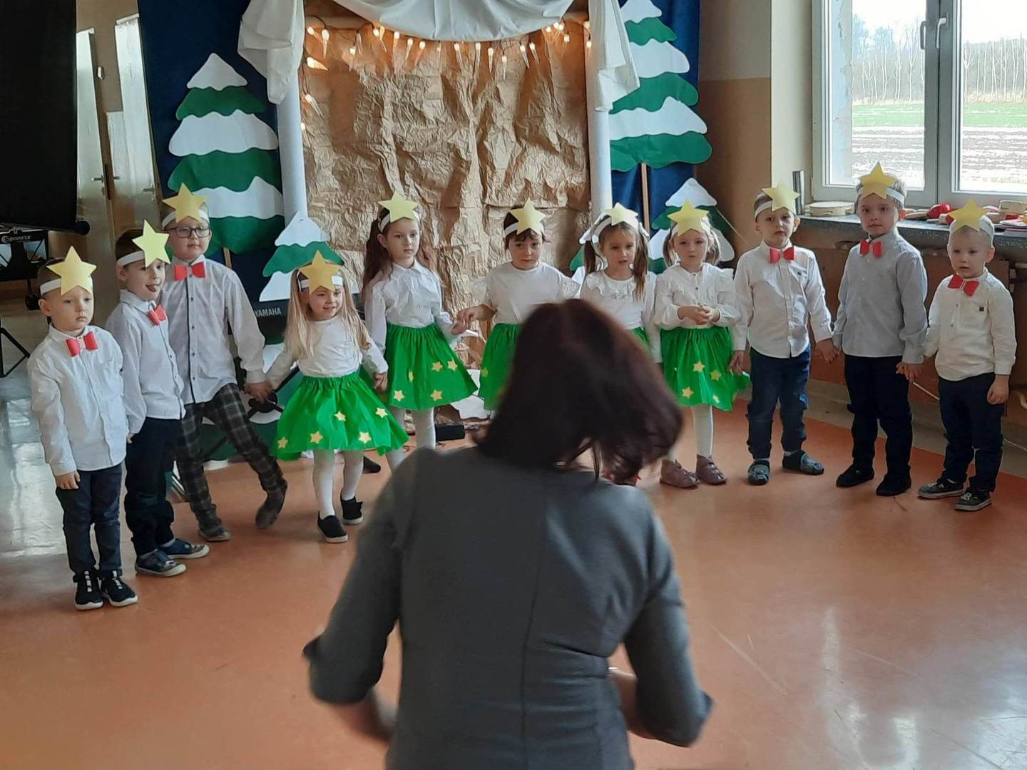 Występom towarzyszył chórek szkolny prowadzony przez panią Kasię T. Również przedszkolaki pod kierunkiem swoich pań, pani Kasi C. i pani Krysi, zaprezentowały świąteczno-zimowy występ. A Agatka zagrała dla wszystkich kolędę. Wszyscy zebrani wspólnie zaśpiewali kilka kolęd, uśmiechali się do siebie, pani dyrektor złożyła życzenia.