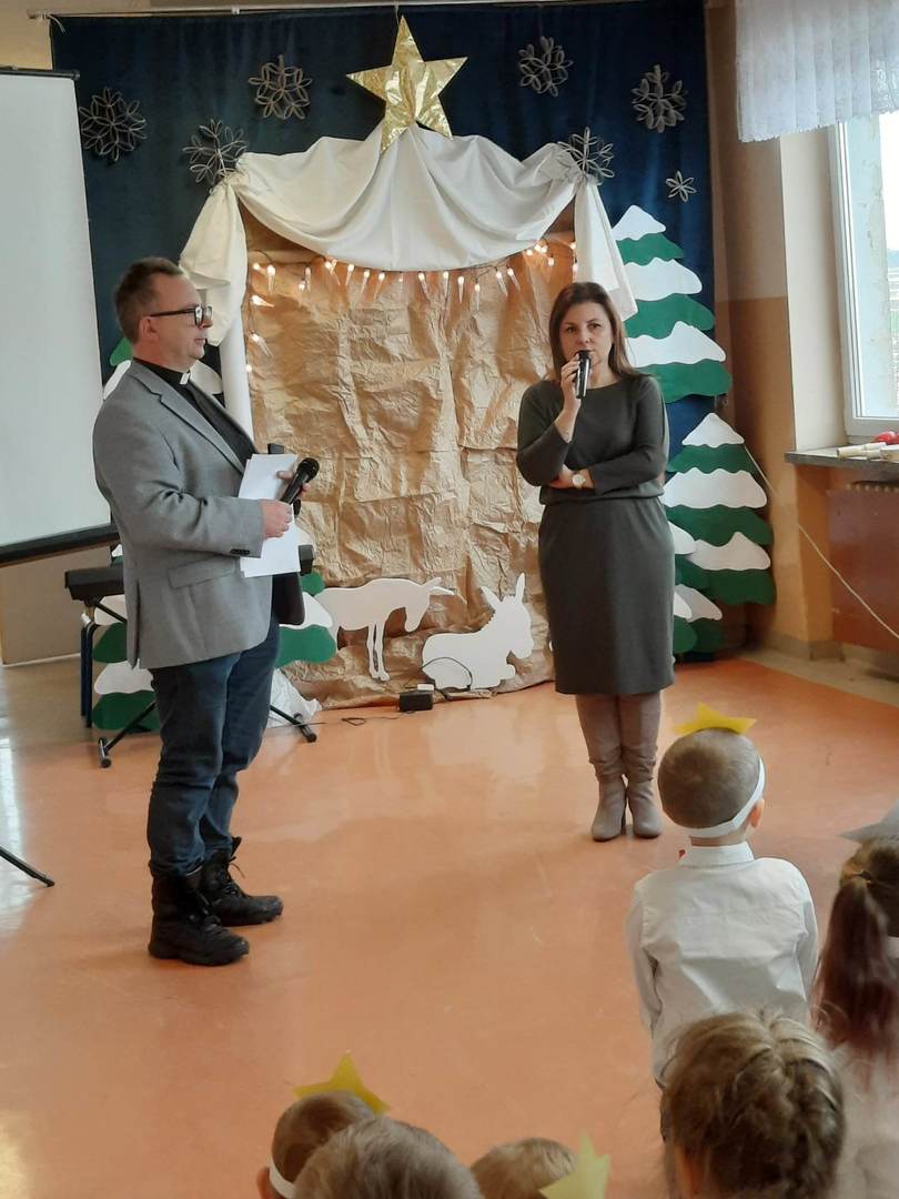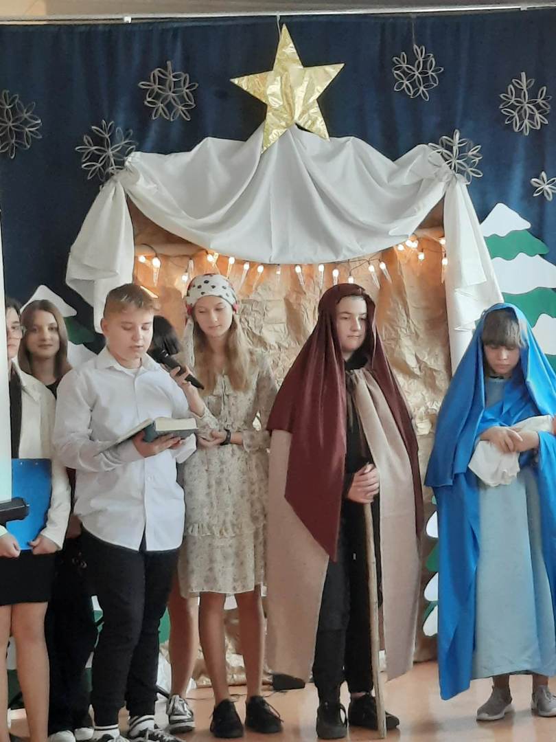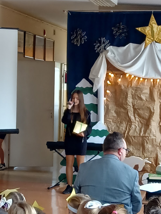 W ostatnim dniu nauki przed przerwą świąteczną mali i duzi, dzieci i dorośli, wszyscy obecni tego dnia w szkole, spotkali się, by wspólnie obejrzeć i przeżywać przedstawienie jasełkowe przygotowane przez klasę szóstą i księdza Tomasza. Miało ono nam wszystkim uświadomić istotę Świat Bożego Narodzenia.