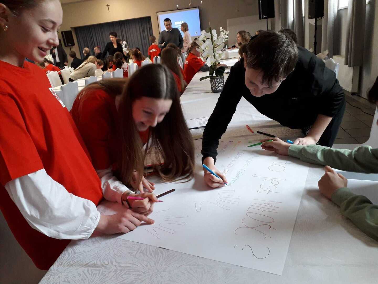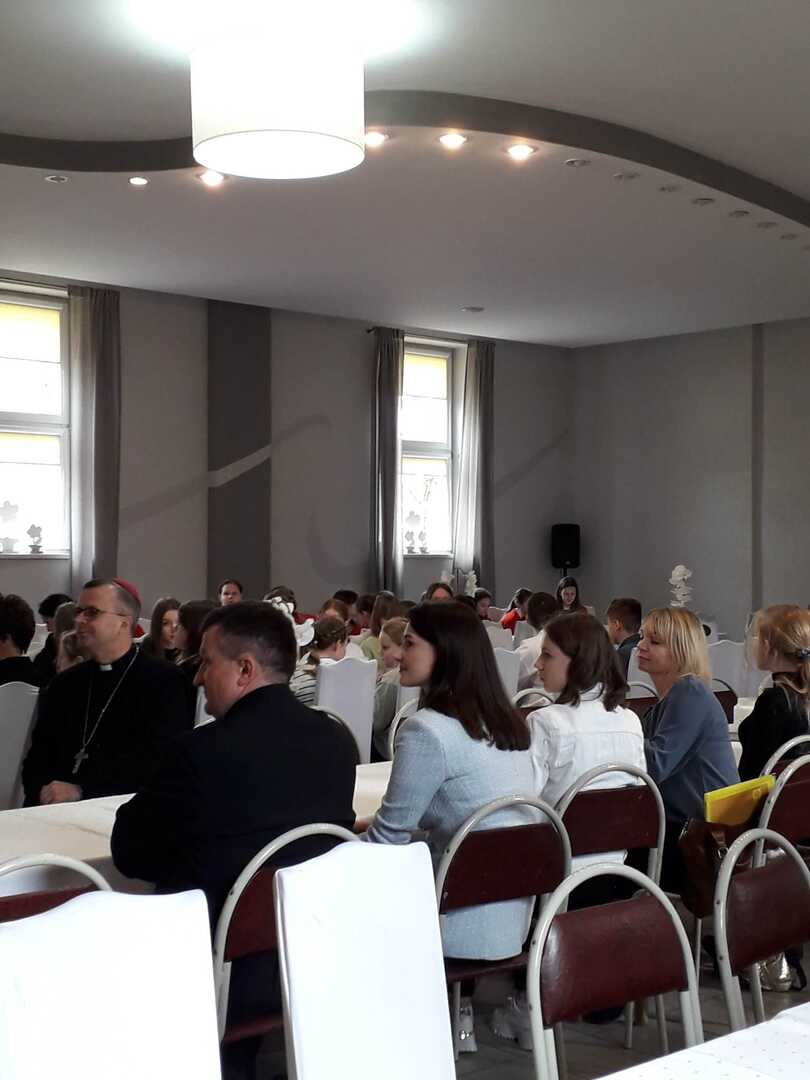 1 kwietnia b.r. 18 osobowa grupa wolontariuszy z naszej szkoły wraz z opiekunem wzięła udział w Diecezjalnym Spotkaniu Wolontariuszy w Ostrowie Wlkp. Spotkanie rozpoczęła uroczysta msza święta pod przewodnictwem biskupa Damiana Bryla. Po mszy dyrektor Caritas Diecezji Kaliskiej, ks. Piotr Kowalek, skierował słowo do młodych ludzi, wyrażając swoje zadowolenie z ich licznej obecności i podzielił się propozycją na dalszą współpracę. Następnie organizator spotkania, ks. Łukasz Skoracki dyrektor Ośrodka Caritas w Słupi pod Kępnem, wraz z panią kierownik WTZ w Słupi zaproponowali uczestnikom pracę w grupach, która zaowocowała integracją zespołów i wspólnymi prezentacjami wykonanych plakatów. Po prezentacji prac zespoły poszczególnych szkół przybliżyły także swoją działalność. Na koniec wszyscy mogli wspólnie biesiadować przy pysznej pizzy i słodkich smakołykach. Nie zabrakło również upominków. Każdy wolontariusz otrzymał worek z logo Caritas i pamiątkowy kubek.