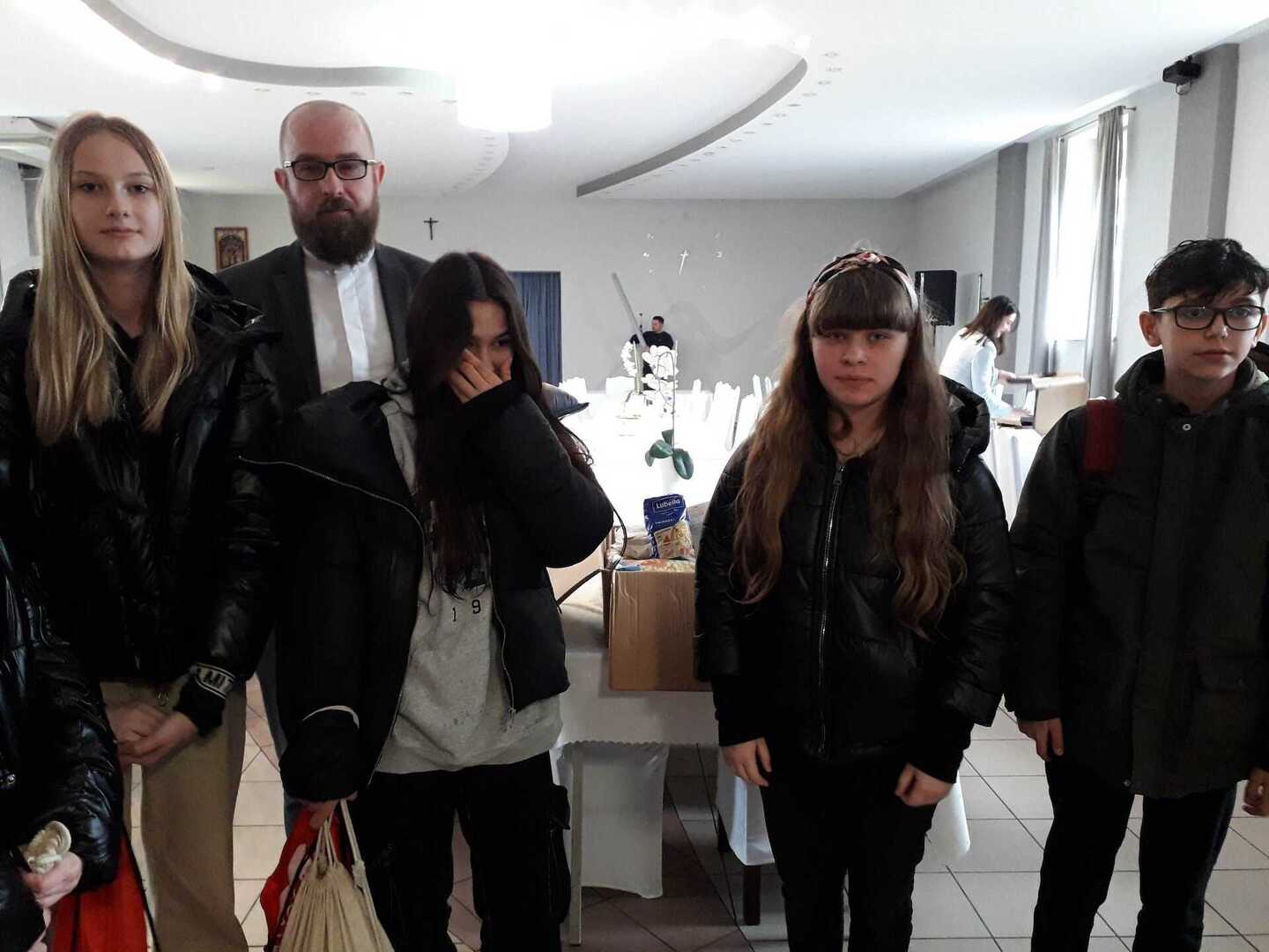Po Diecezjalnym Spotkaniu Wolontariuszy w Ostrowie Wielkopolskim nasza grupa z klasy VI przekazała ks. Łukaszowi zebrane przez siebie produkty spożywcze z przeznaczeniem do kuchni dla potrzebujących.