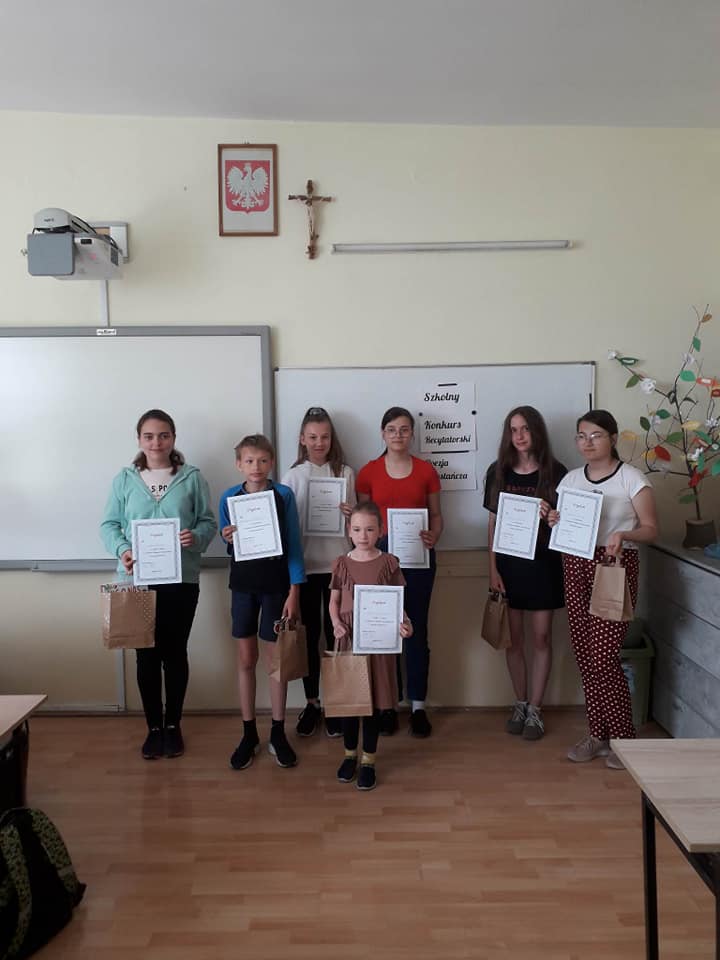 Do konkursu przystąpili uczniowie z klas II-VII. Oceniani byli w trzech grupach wiekowych. Laureatkami zostały: Zosia Światłowska z kl. II, Zosia Borczyk z kl. V i Vanessa Grygier z kl. VII.