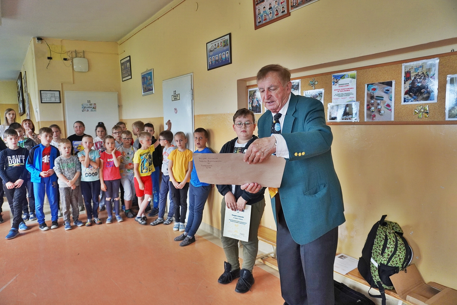 14.06 wraz z panem Kazimierzem Błaszczakiem prezesem „Stowarzyszenia Astronomki Marii Kunic” mieliśmy przyjemność uczestniczyć w wyjątkowym wydarzeniu- uroczystym wręczeniu nagrody dla ucznia naszej szkoły- Kacpra Lisowskiego z klasy IV, który zwyciężył w konkursie na komiks o Marii Kunc.