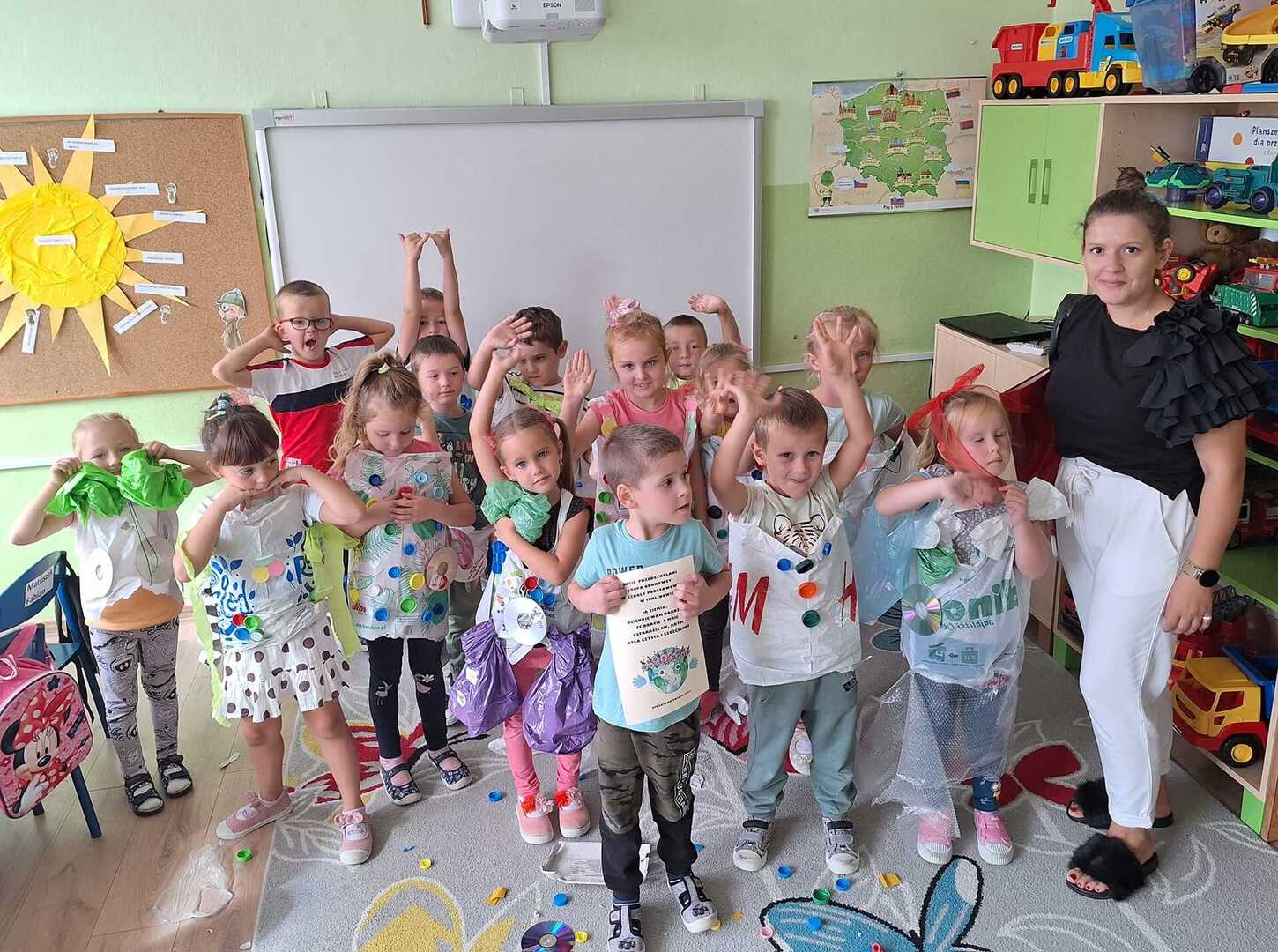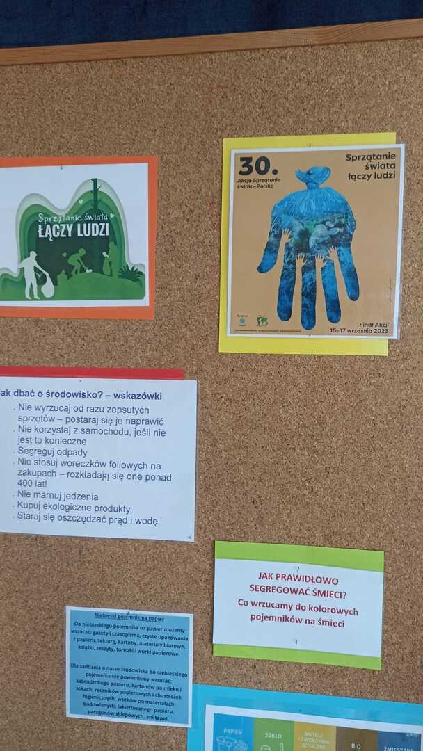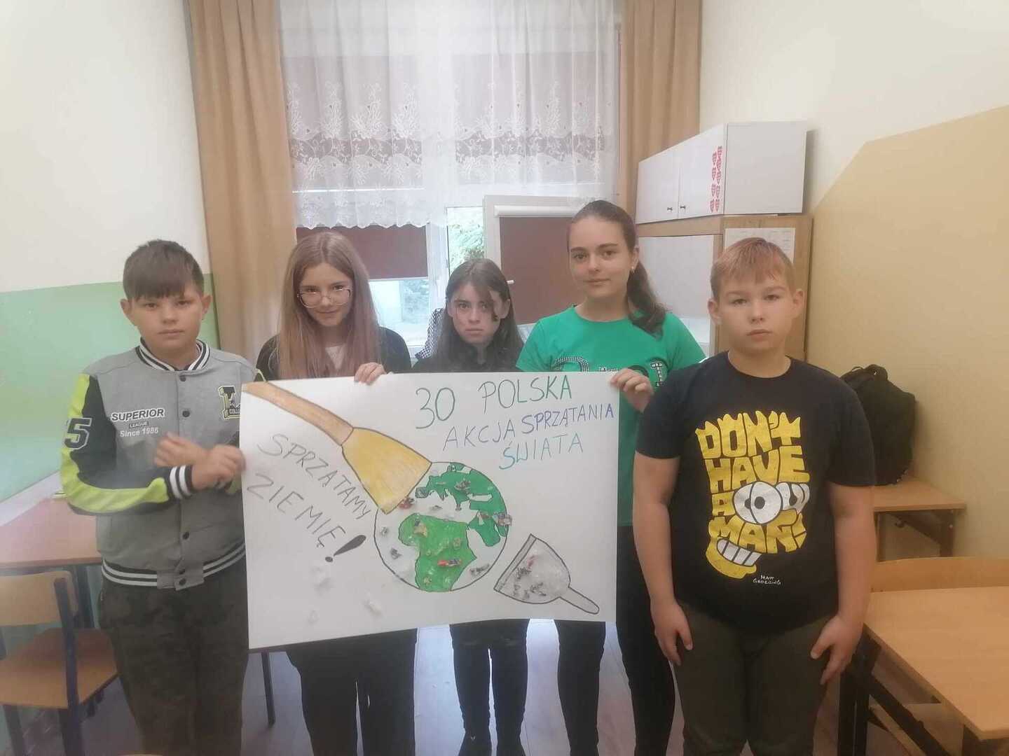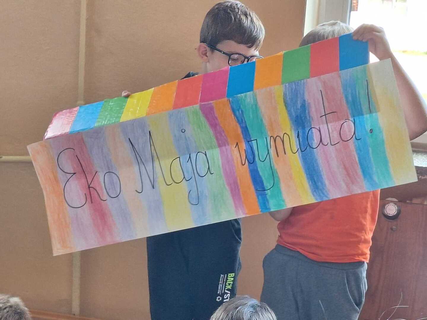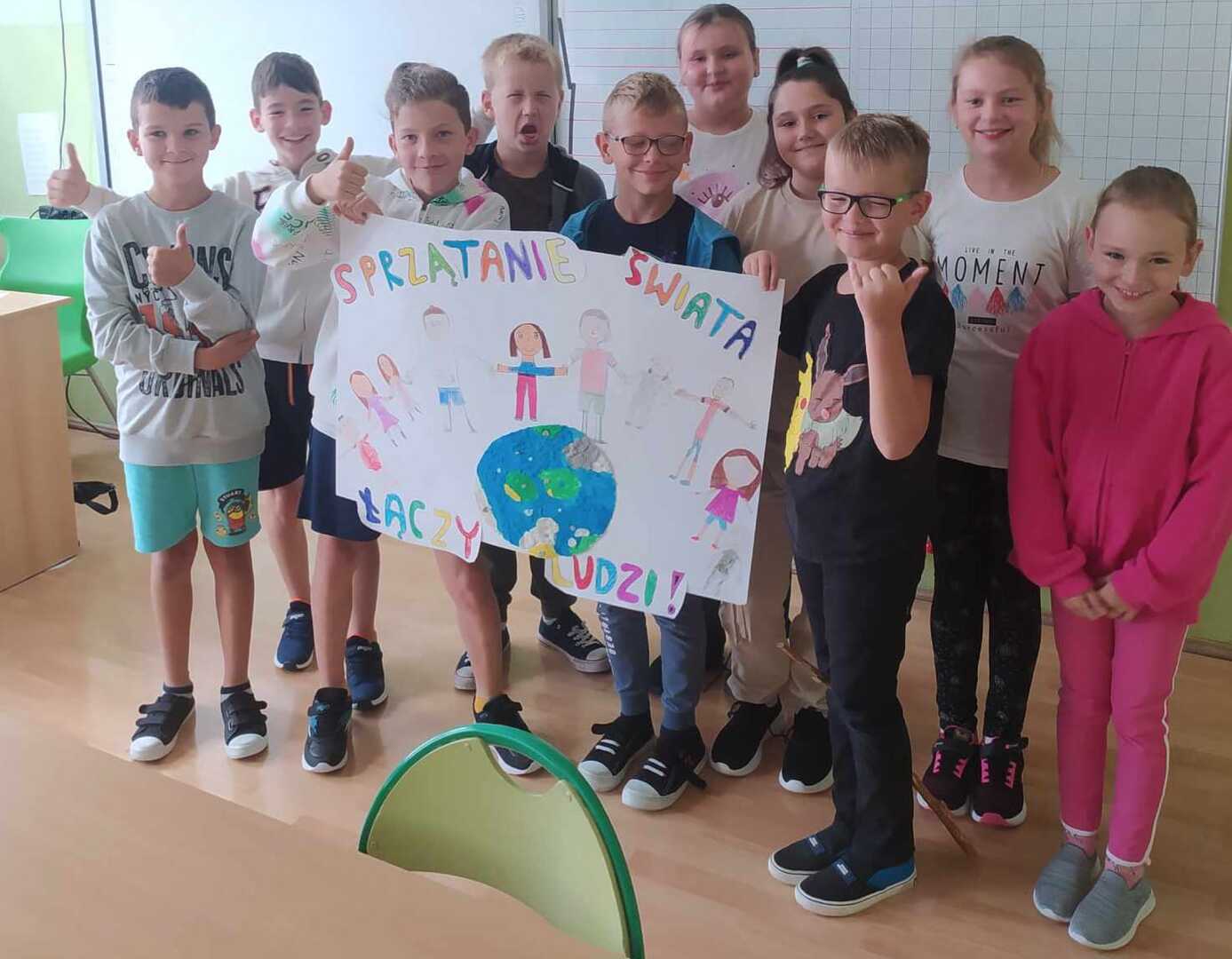 Dzisiaj wszyscy uczniowie i przedszkolaki podjęli działania, których celem było zadbanie o naszą planetę. Najpierw dzieci wykonały plakaty nawiązujące do akcji " Sprzatanie świata". Potem młodzi ekolodzy projektowali i wykonywali ubrania z materiałów, które najczęściej lądują w koszach na śmieci (m.in. papieru, plastikowych butelek, worków foliowych). Po prezentacji plakatów i strojów ekologicznych uczniowie przystąpili do porządkowanie otoczenia szkoły i pielęgnacji ogródka szkolnego.
