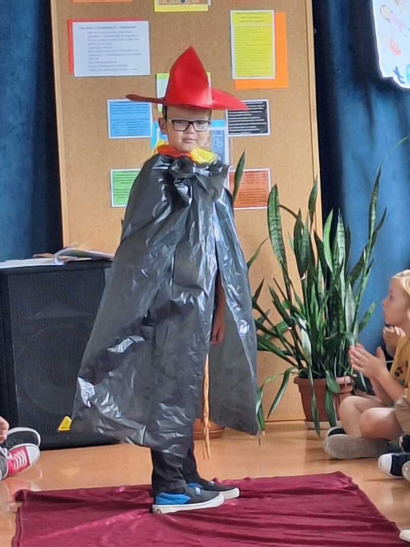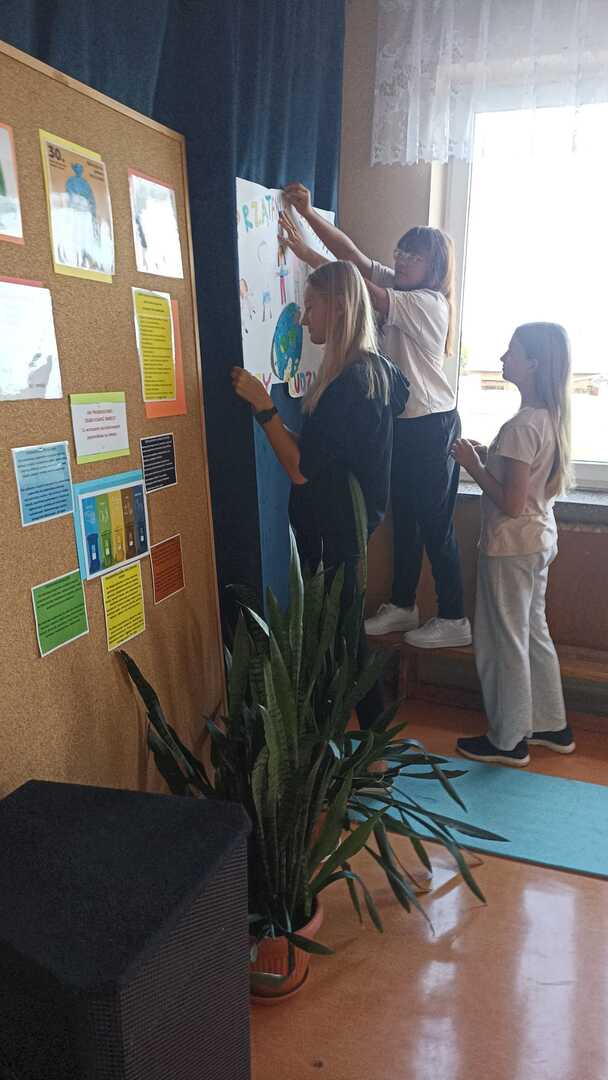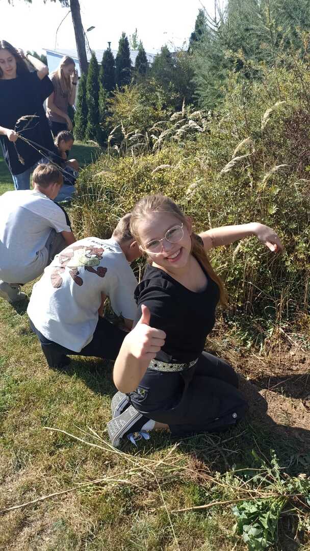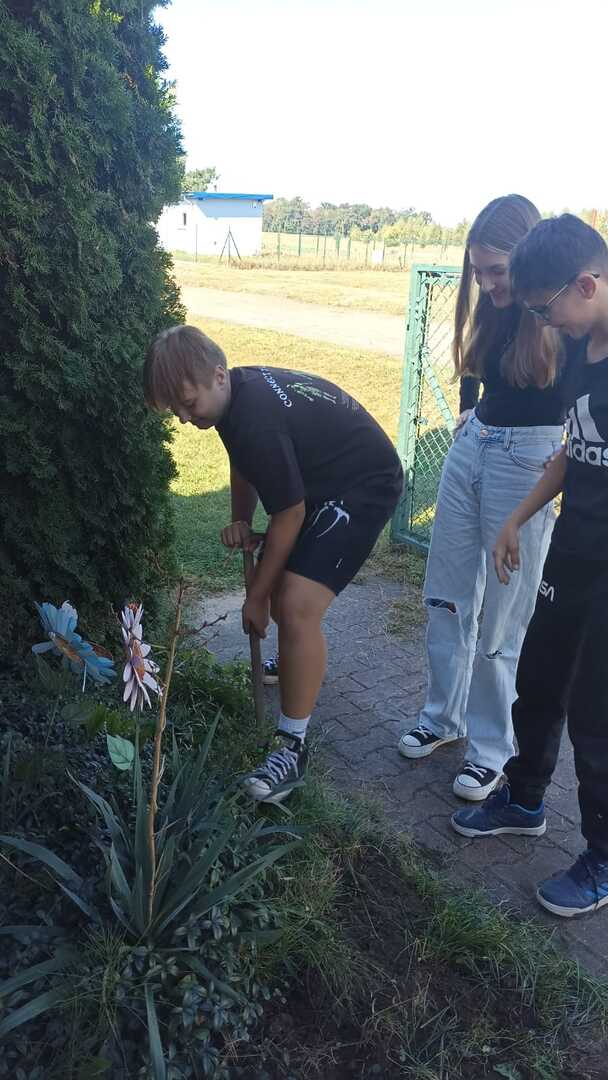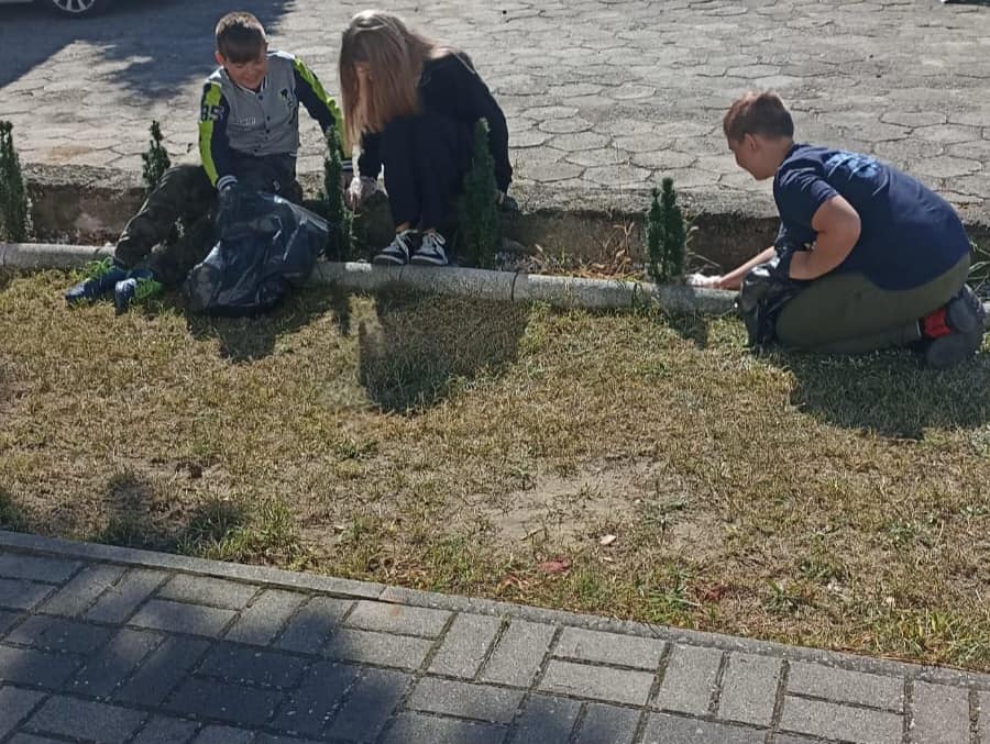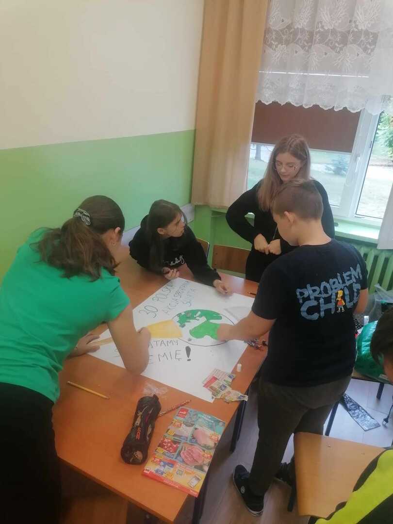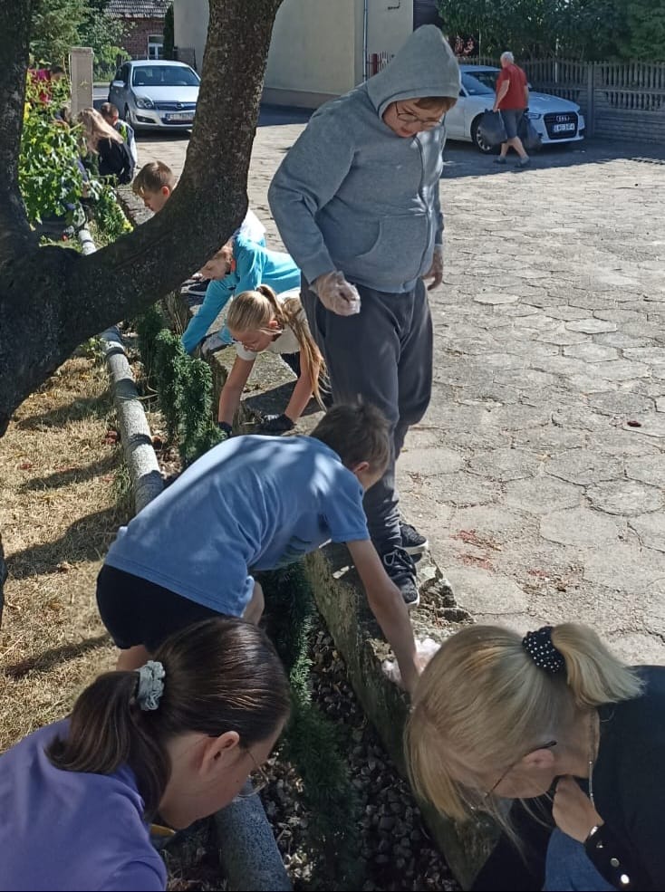 Dzisiaj wszyscy uczniowie i przedszkolaki podjęli działania, których celem było zadbanie o naszą planetę. Najpierw dzieci wykonały plakaty nawiązujące do akcji " Sprzatanie świata". Potem młodzi ekolodzy projektowali i wykonywali ubrania z materiałów, które najczęściej lądują w koszach na śmieci (m.in. papieru, plastikowych butelek, worków foliowych). Po prezentacji plakatów i strojów ekologicznych uczniowie przystąpili do porządkowanie otoczenia szkoły i pielęgnacji ogródka szkolnego.