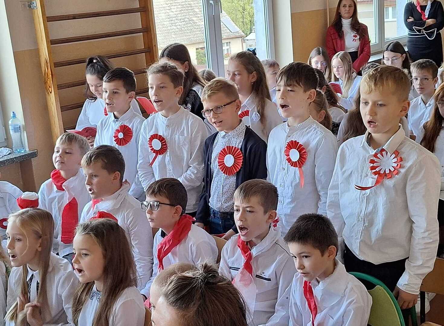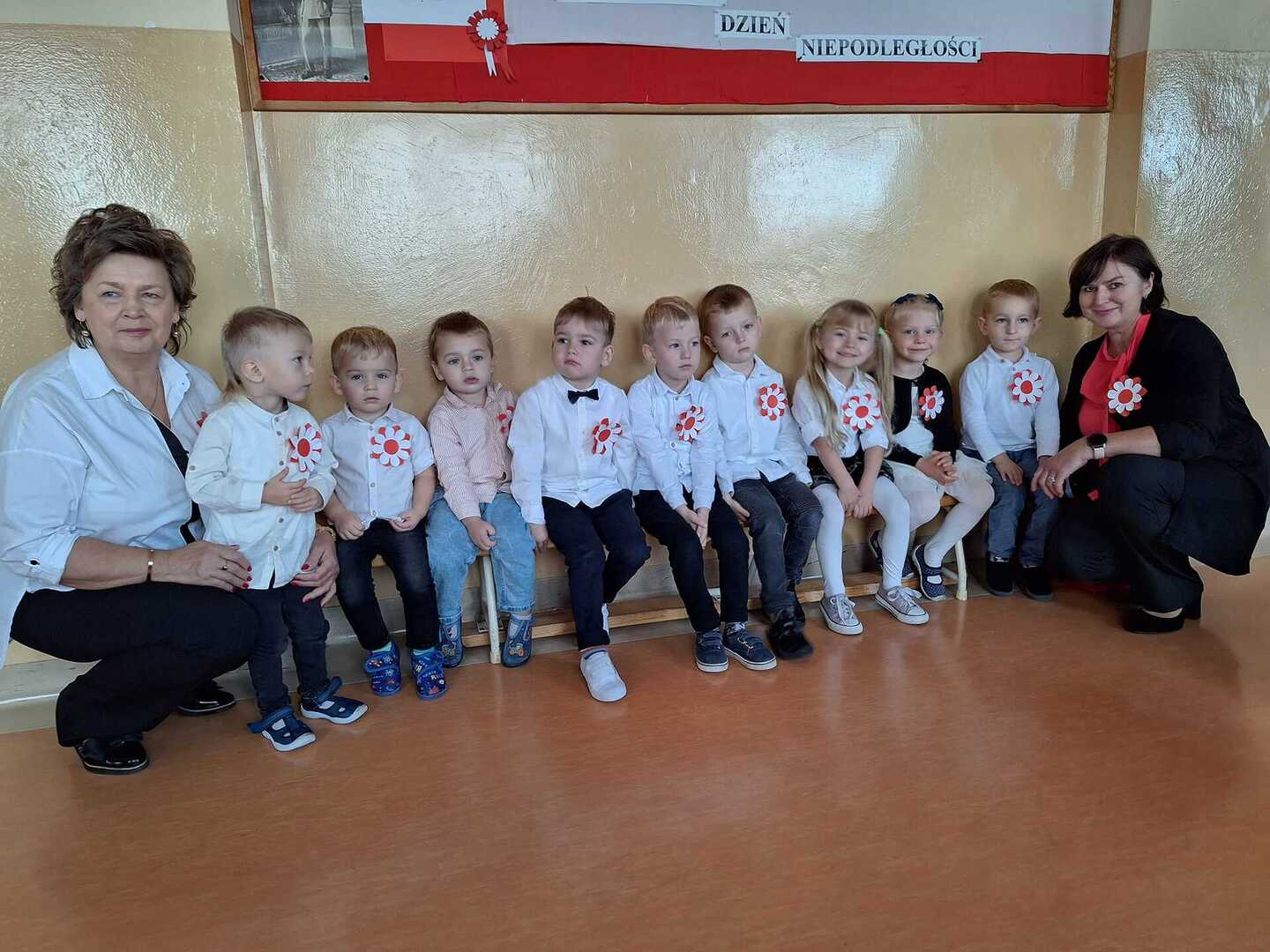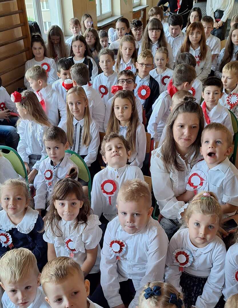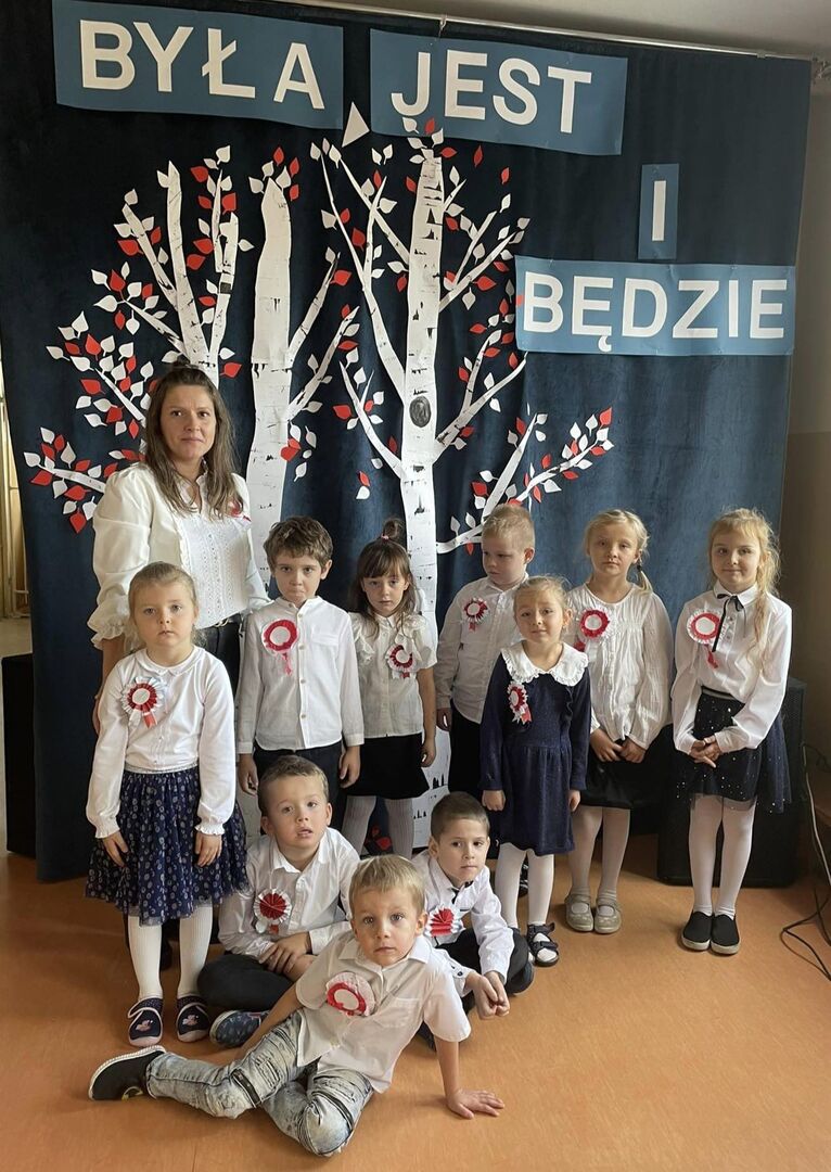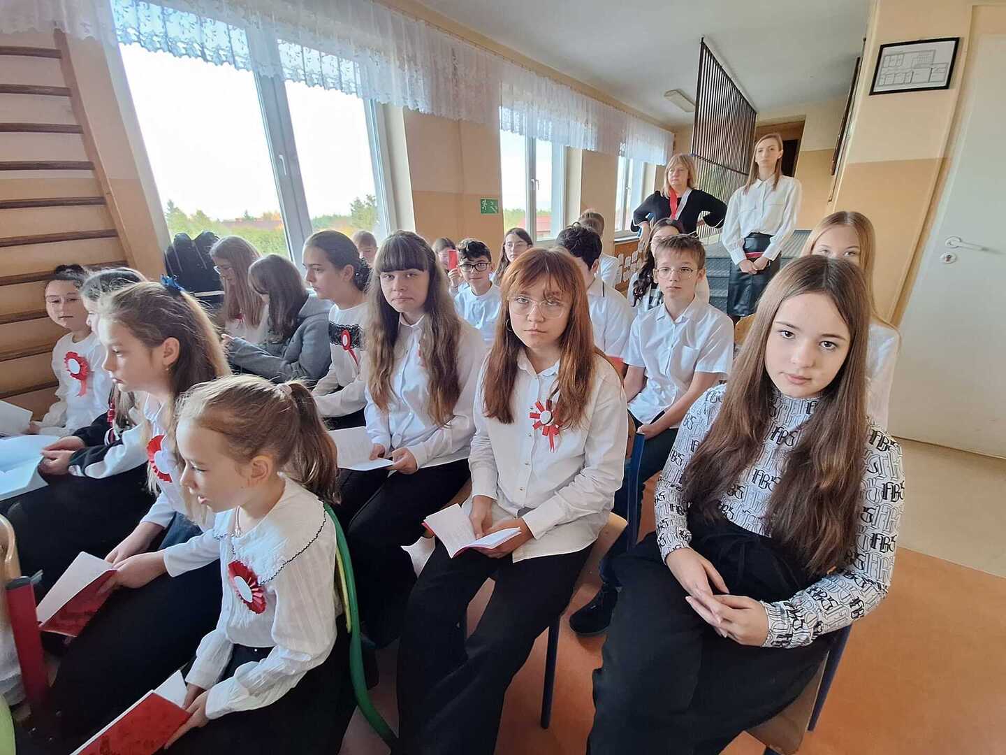 Dziś uroczyście zebraliśmy się wszyscy razem, by uczcić jutrzejsze wielkie święto narodowe - Święto Niepodległości. Zaśpiewaliśmy "Mazurka Dąbrowskiego" i wysłuchaliśmy kilku słów o historii Polski i Polaków. Następnie wzięliśmy udział w koncercie polskich pieśni patriotycznych - wszyscy byliśmy artystami. Na zakończenie wystąpili przed nami także nasi nauczyciele.