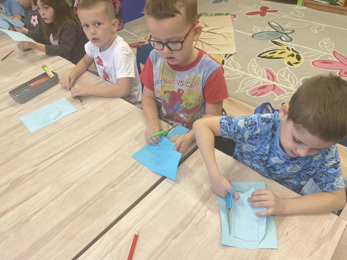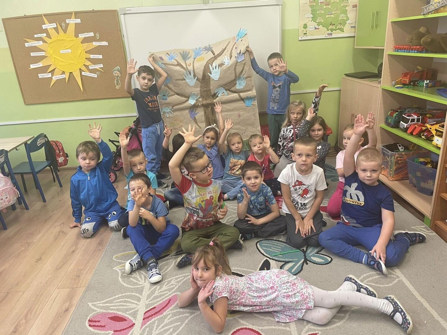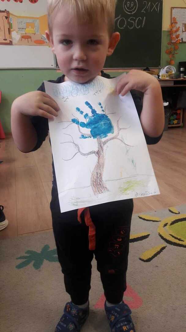 Przedszkolaki z obu grup wykonywały drzewka życzliwości. W grupie 3,4 latków każde dziecko wykonywało swoje, natomiast w 5,6 latkach powstało jedno grupowe.