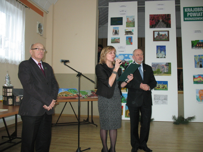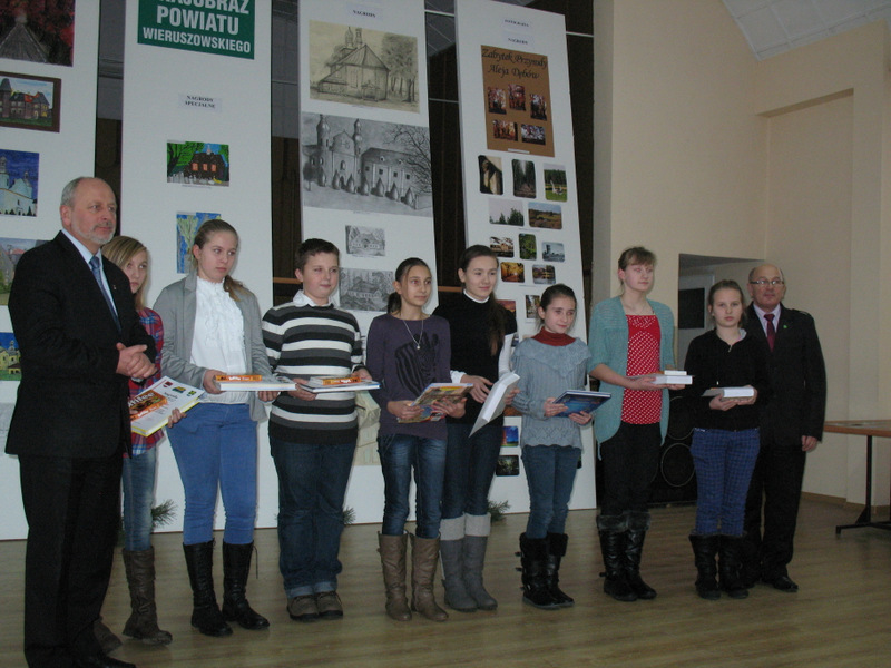 12 grudnia 2012 br. podsumowano XIII edycję konkursu „Krajobraz Powiatu Wieruszowskiego”. Organizatorzy: Gminny Ośrodek Kultury w Galewicach i Starostwo Powiatowe w Wieruszowie serdecznie zaprosili wszystkich uczestników konkursu na salę OSP w Galewicach, gdzie podsumowanie konkursu połączyli z wystawą prac i uroczystym wręczeniem nagród. Ogółem na konkurs plastyczny wpłynęło 179 prac (malarstwo, rysunek) oraz 145 fotografii. W konkursie uczestniczyły szkoły podstawowe, gimnazja, szkoły ponadgimnazjalne. Komisja Konkursowa nagrodziła i wyróżniła prace uczniów w różnych kategoriach wiekowych. Prace Sandry Adamskiej i Darii Kupczyk znalazły się pośród 9 nagrodzonych prac w kategorii wiekowej – uczniowie klasIV-VI. Uczennice te wraz z Jolantą Mortą – nauczycielką plastyki pojechały do Galewic po odbiór nagród. Nie po raz pierwszy uczniowie z naszej szkoły są laureatami tego konkursu. Jest więc kolejny powód do dumy i radości. Naszym uczennicom gratulujemy sukcesu!