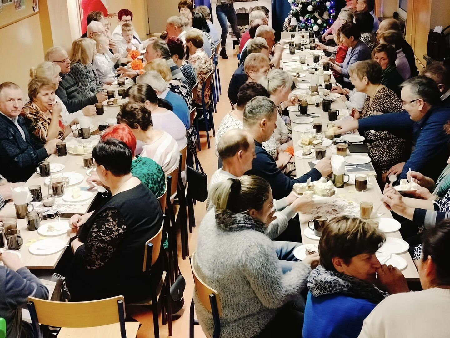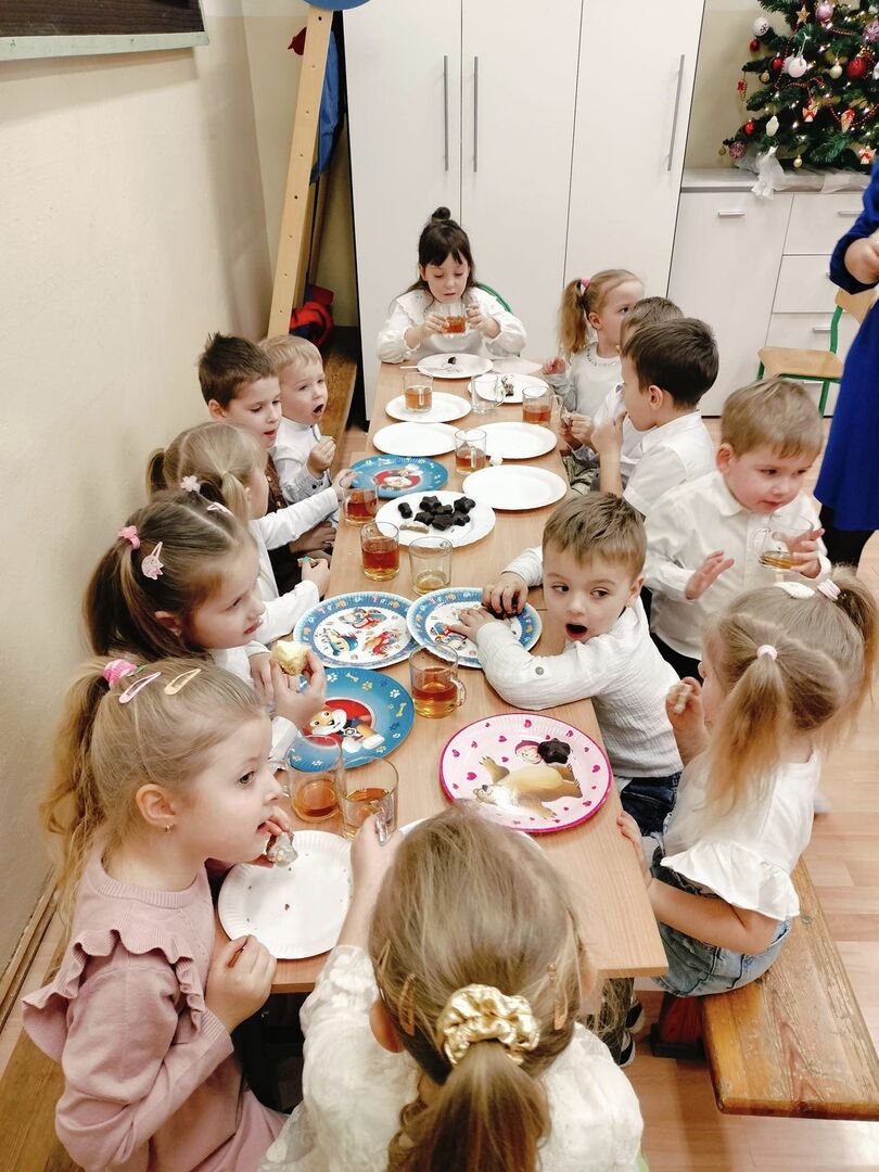 Na koniec części artystycznej było wręczenie laurek oraz poczęstunek dla Babć i Dziadków oraz dla dzieci .