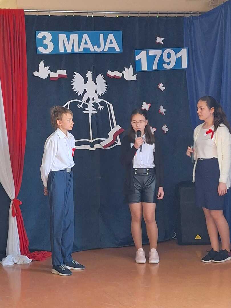 Dziś w naszej szkole odbył się uroczysty apel z okazji Święta Narodowego Trzeciego Maja. Obchodzimy je na pamiątkę uchwalenia 3 maja 1791r. Ustawy Rządowej Rzeczypospolitej Obojga Narodów znanej jako Konstytucja 3 maja. Historię oraz jej znaczenie przybliżyli nam uczniowie kl.5 i kl. 6. O polskości, patriotyzmie i poszanowaniu flagi i barw narodowych wierszem i piosenką opowiedziały nam dzieci z naszych oddziałów przedszkolnych. Nie zabrakło także tradycyjnej pieśni "Mazurek 3 maja". Wszyscy zebrani włączyli się w śpiew.