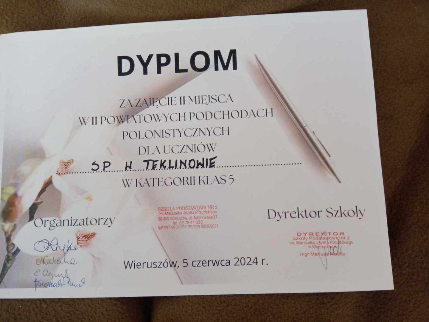 Dziś dwa zespoły uczniowskie ( po jednym z klasy 5 i 6) wzięły udział w Powiatowych Podchodach Polonistycznych, które odbyły się w Szkole Podstawowej nr 2 im. Marszałka Józefa Piłsudskiego w Wieruszowie.